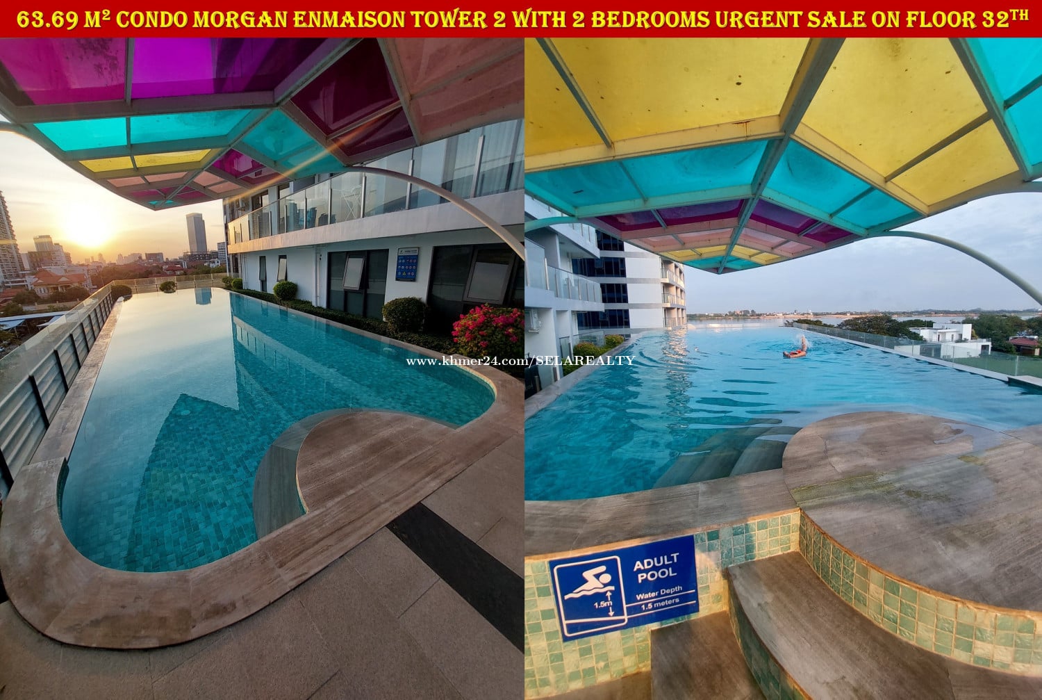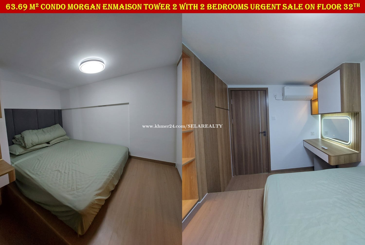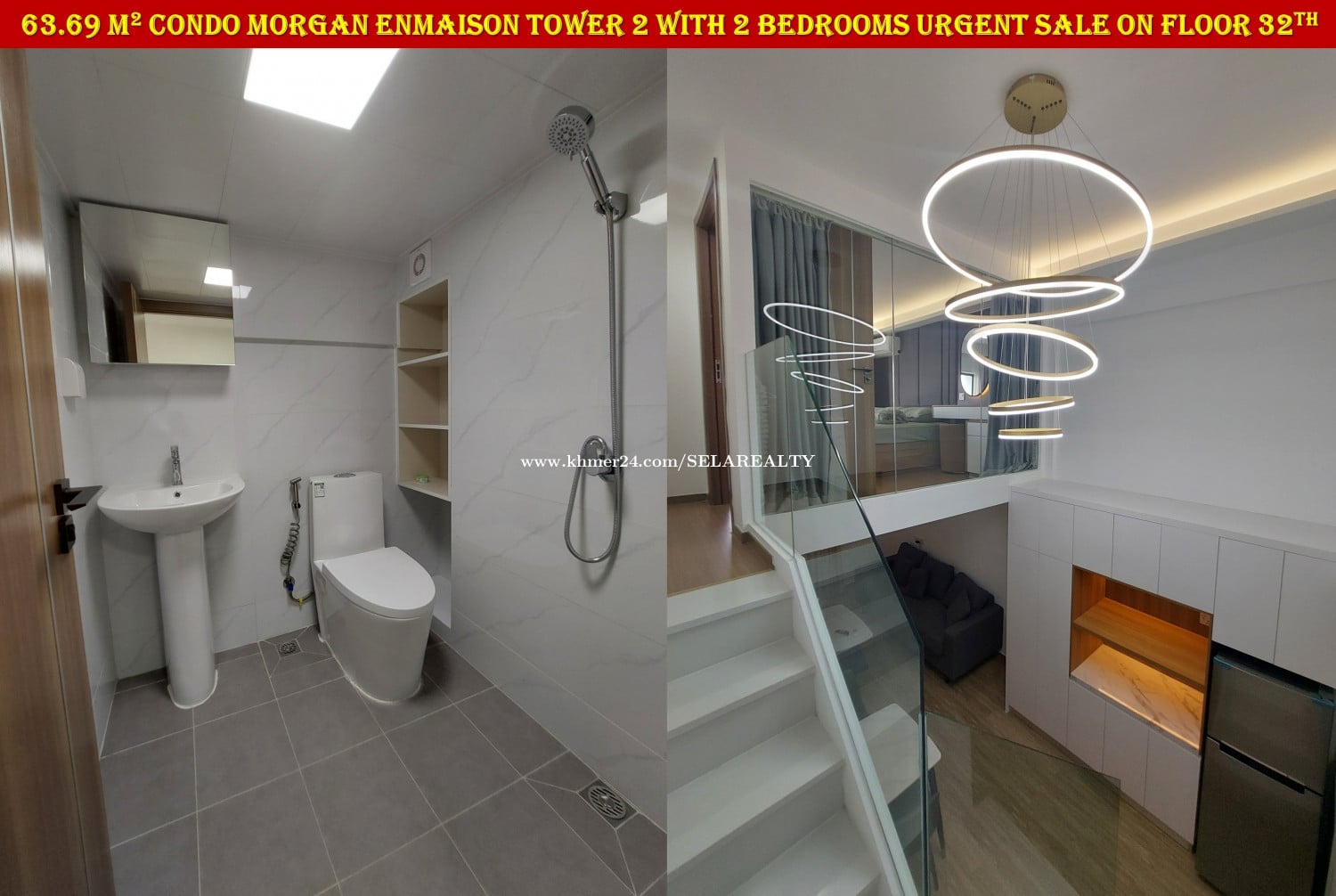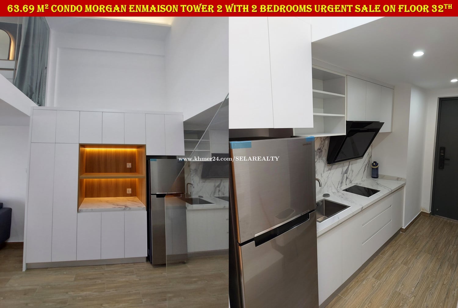 #SC037 ๐ 2 Floor Condo Morgan Enmaison Tower 2 with 2 Bedrooms Urgent Sale On High Floor - Floor: 32th - Viewing: City & River - Net Area: 63.69 sqm - Bedroom: 2 - Bathroom: 2 - Balcony: 1 - Living area, Kitchen, Dinning areaโ - Very New Fully Furnished ... - Lots of Parking, Gym, Swim, Garden, Restaurant, Office ... - Map: https://maps.app.goo.gl/yDmxGF2wnHnuuDq1A - Sale Price: 95,000$ - Transfer Title: Freehold | Strata Title | Condo Hard Title - Location: Chroy Chong Va, Phnom Penh ๐ Contact Exclusive Realtor: 069239xxxClick To Call | 095799xxxClick To Call | 0713023xxxClick To Call ๐ Telegram Group: https://t.me/+LxD_l_Ua3IA5NTI9 ๐ Follow Our Social Media: https://linko.page/sz66qj64k6gv #SELAREALTY #BPR_Team #Land #House #Villa #Condo #Consultant #SALE #BUY #RENT #LEASE #PhnomPenh #Cambodia