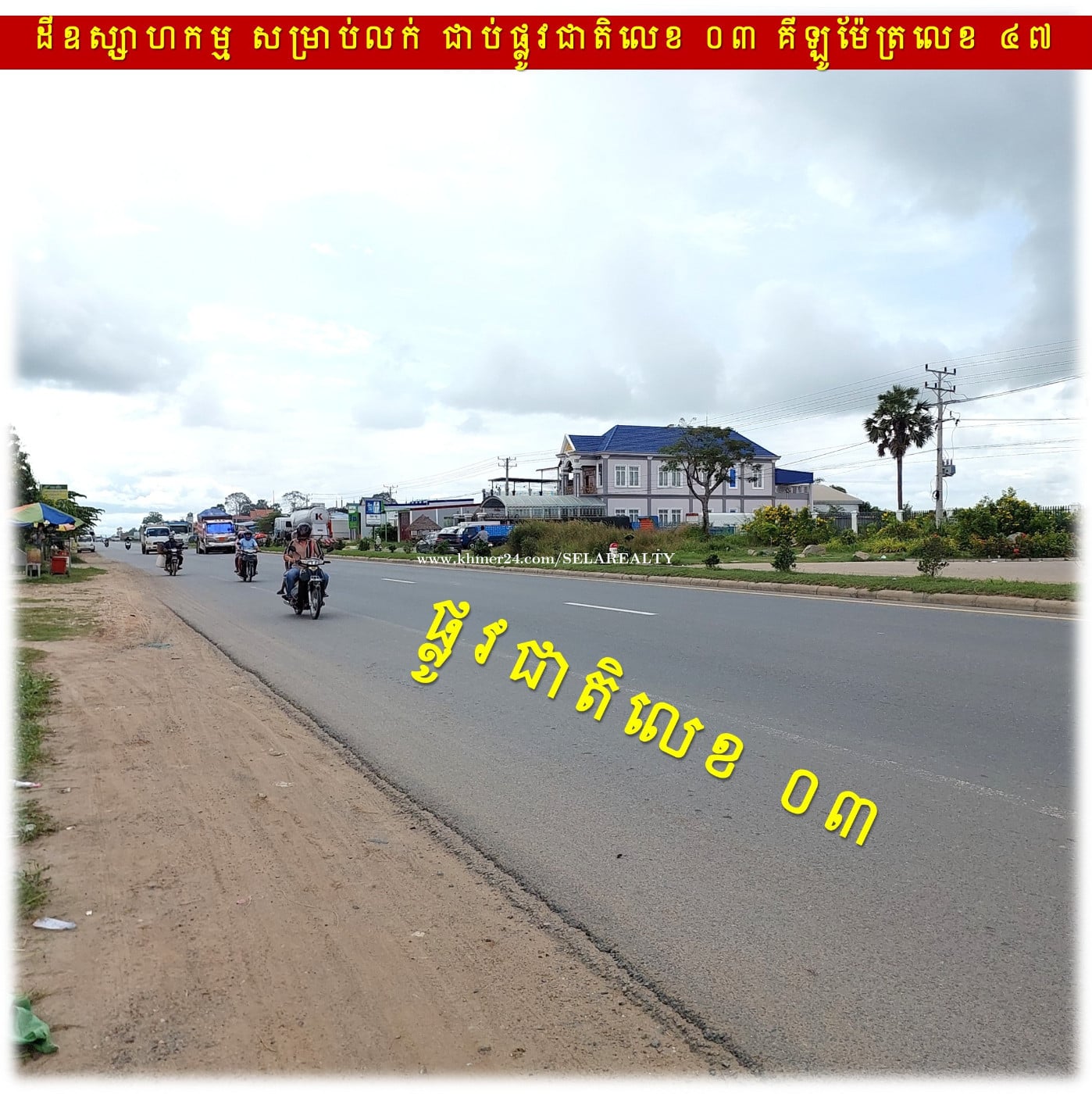 #SD026 »»» តម្លៃពិសេស ដីឧស្សាហកម្ម សម្រាប់លក់ រាងស្មើរជ្រុងល្អ ជាប់ផ្លូវជាតិលេខ ០៣ គីឡូម៉ែត្រលេខ ៤៧ » ដីនៅមុខរោងចក្រ សាកសមសម្រាប់សាងសង់ រោងចក្រ ឃ្លាំង អាគារ បុរី ... » ដីចាក់ខ្ពស់រួចស្រាប់ ជាប់ផ្លូវជាតិលេខ ៣ ងាយស្រួលចេញចូល » ទំហំដី៖ ៦៧ម គុណ ១៧៦ » ទំហំលើប្លង់រឹង៖ ១៣,៥៤១ ម២ » ផែនទី៖ https://maps.app.goo.gl/md32baF54LCbTa5f6 » តម្លៃលក់៖ ៩០ ដុល្លារ/ម២ រឺ ១,២១៨,៦៩០ ដុល្លារ » ផ្ទេរកម្មសិទ្ធិ៖ វិញ្ញាបនបត្រសម្គាល់ម្ចាស់អចលនវត្ថុ ប្លង់រឹង LMAP » ទីតាំង៖ ភូមិច្បារមន ឃុំកុមារាជា ស្រុកបាទី ខេត្តតាកែវ 👉 ទំនាក់ទំនងជាមួយភ្នាក់ងារទទួលសិទ្ធិលក់ផ្តាច់មុខ៖ 069239xxxClick To Call | 095799xxxClick To Call | 0713023xxxClick To Call 👉 គ្រុបតេឡេក្រាម៖ https://t.me/+LxD_l_Ua3IA5NTI9 👉 តាមដានបណ្តាញសង្គមយើងខ្ញុំ៖ https://linko.page/sz66qj64k6gv #SELAREALTY #BPR_Team #Land #House #Villa #Condo #Consultant #SALE #RENT #LEASE #BUY #Property #PhnomPenh #Cambodia