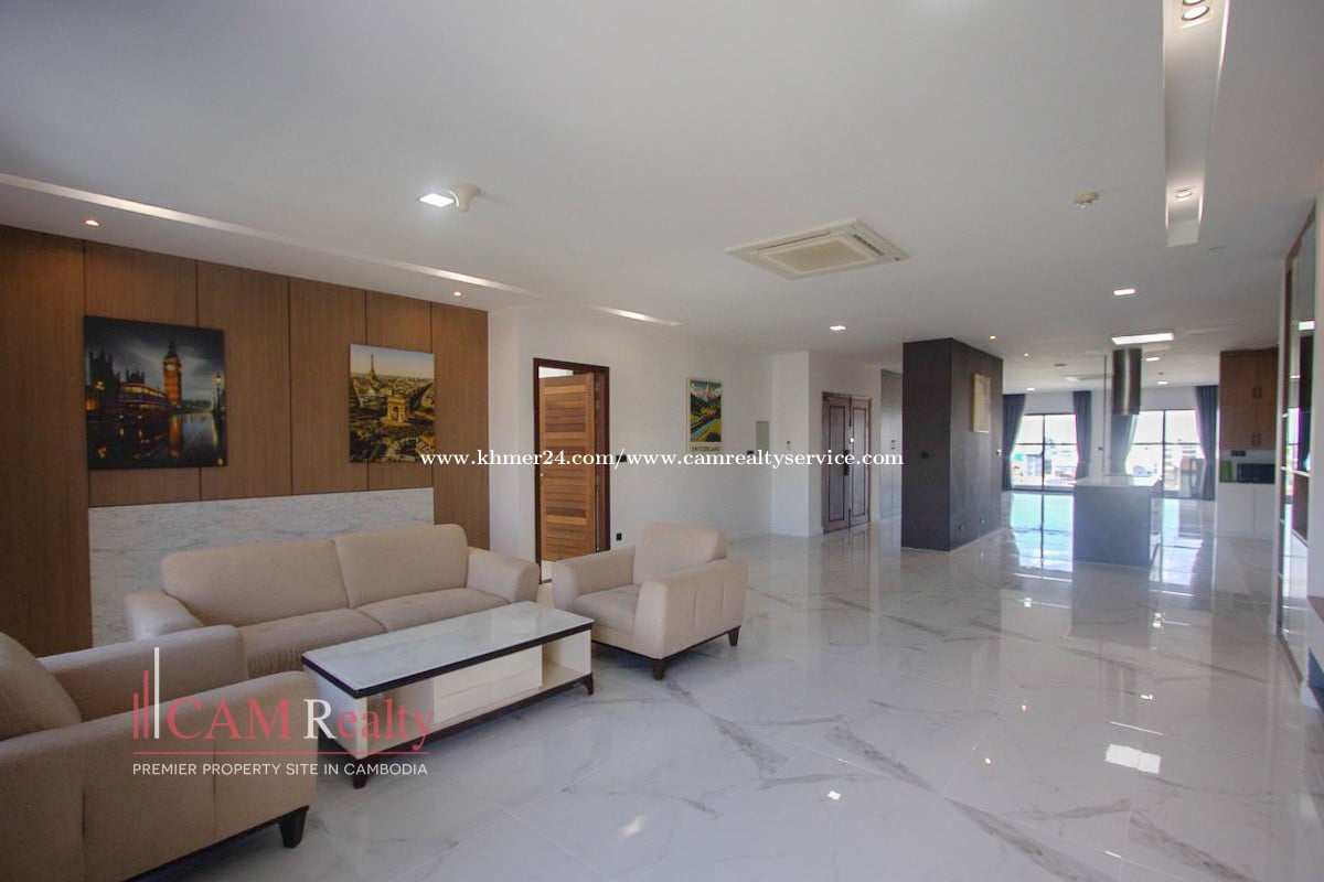 4 Bedrooms Penthouse For Rent In Touk Kork Rental price: 3500$/month (negotiable) Perperty Link: https://camrealtyservice.com/property/spacious-4-bedrooms-oebthouse-for-rent-in-toul-kork-n4412168/">https://camrealtyservice.com/property/spacious-4-bedrooms-oebthouse-for-rent-in-toul-kork-n4412168/ Video Link: https://youtu.be/pEswtt4Kl2o Fully furnished 4 bedrooms 4 bathrooms (1 bathtub) Living room Kitchen Size: 400 sqm Refrigerator Washing machine Swimming pool Fitness center Elevators Rent includes: 24/7 security Cleaning: 2 times/week Facilities usage Rent excludes: Electricity: 0.35$/kWh Water usage: 0.40$/m3 Car parking: 50$/month To check the availability of this or a similar property in Phnom Penh, please send us an email by filling out the contact form below or inbox us on Telegram, WhatsApp, Line, or WeChat to get in touch with our professional real estate agents. H/P: +855(0)99 556 694 (English)/ +855(0)11 26 88 99 (日本語) WhatsApp: https://wa.me/message/DUNLIJSD2XQJO1 Telegram: https://t.me/apartmentagent E-mail: inf*@camrealtyservice.comClick To Sent Email Website: https://camrealtyservice.com/