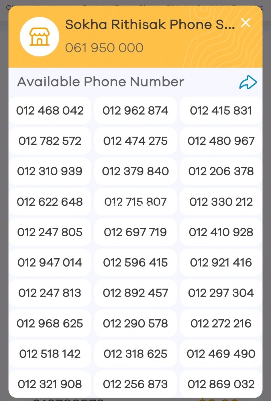 Hello Hello All Dear in khmer24 087 666 078 = 40$ 086/089 999 893 =250$ Now 150$ 015 728 168 = 80$ 098 638 168 =120$ 086/078 868 969 =99$ 086 695 000 =50$ 086 537 666 =60$ 070 333 537 =70$ 0963977 977 =50$ 096 2222 679 =150$ 096 7678910 =250$ 069 888894 =699$ Metfone 068 644 111 =65$ 068 744 476 =25$ 067 964 666 =70$ 066 995 444 =50$ 066 993 444 =50$ 066 715 444 =50$ 066 784 000 =40$ 060 254 666 =70$ 060 394 666 =70$ 060 724 666 =70$ 060 734 666 =70$ 060 934 666 =70$ 097 2345 030 =15$ 097 2345 498 =10$ 097 2345 507 =10$ 097 2345 518 =10$ 097 2345 537 =10$ 097 2345 706 =10$ 097 2345 703 =10$ 097 2345 727 =15$ 097 2345 736 =10$ 097 2345 780 =10$ 097 2345 825 =10$ 097 2345 837 =10$ 097 2345 870 =10$ 097 2345 907 =15$ 097 2345 928 =10$ 097 2345 929 =15$ 097 2345 938 =10$ 097 2345 945 =10$ 097 2345 975 =10$ 097 2345 978 =10$ 097 2345 275 =10$ 097 2345 883 =10$ 097 2235677 =10$ 097 234 9876 =25$ 097 49 43210 =15$ 097 33 43210 =15$ 097 9772 555 =30$ 097 7153 555 =30$ 097 9471 555 =30$ 097 9524 555 =30$ 097 9330 555 =35$ 097 9331 555 =35$ 097 442 5588 =15$ 097 975 2525 =20$ 097 707 4646 =10$ 097 777 9081 =10$ 088 92 77555 =50$ 088 7396 555 =30$ 088 255 7444 =20$ 088 7711 577 =15$ 088 825 7755 =10$ 071 443 63 73=15$ 071 512 33 23=10$ 071 799 9192 =15$ 071 7999 141 =15$ 071 7999 277 =15$ 071 8674 774 =10$ 071 43 70000 =100$ 071 2950000 =150$ 071 278 6699 =10$ 071 206 5599 =10$ 071 291 5599 =10$ 071 291 5588 =10$ 071 293 7788 =15$ 071 275 6699 =10$ 071 264 7788 =15$ 071 278 1188 =15$ 071 264 1444 =20$ 071 262 1444 =20$ 071 264 7444 =20$ 071 2629 444 =20$ 071 2602 444 =15$ 071 8575 000 =20$ 071 947 2000 =15$ 071 959 1000 =20$ 071 984 7000 =15$ 031 2047 666 =20$ 031 2437 666 =20$ 031 5413 555 =15$ 031 5420 555 =15$ 031 5423 555 =15$ 031 5274 555 =15$ 031 2607 444 =15$ 031 2445 444 =35$ 031 4568 333 =15$ 031 4564 333 =15$ 031 4561 333 =15$ 031 4560 333 =15$ 031 52 66333 =20$ 031 26 00333 =20$ 031 4745 111 =20$ 031 23 77000 =20$ 031 538 4000 =15$ 031 481 4000 =15$ 031 528 7000 =15$ 031 3399 900 =20$ 031 329 9900 =10$ 031 3 299922 =20$ 031 328 8844 =15$ 031 328 8855 =15$ 031 328 8877 =15$ 031 289 9949 =10$ 031 289 9959 =15$ 031 289 9955 =15$ 031 885 0101 =10$ 031 885 1414 =10$ 031 885 5656 =20$ 031 885 7878 =15$ 031 247 0707 =10$ 031 299 3333 =450$ 088 599 3333 = 600$ 031 6999 555 =699$ Cellcard 061 8888 04 = 350$ 061 600 601 = 50$ 061 73 74 74 = 40$ 014 8888 49 = 350$ 014 99 98 97 = 150$ 014 727 227 = 25$ 014 522 252 = 20$ 014 82 83 83 = 80$ 014 91 91 92 =80$ 012 399 400 = 20$ 011 488 844 = 40$ 011 61 61 62 = 80$ 076 9999 779 =799$ 076 25-33333 =1100$ 076 7777 139 = 80$ 076 7777 313 = 120$ 076 7777 597 = 90$ 076 7777 672 = 80$ 076 7777 845 = 80$ 076 7777 905 = 60$ 076 7777 938 = 80$ 076 7777 968 = 80$ 076 6666 354 = 70$ 076 5555 019 = 70$ 076 5555 973 = 70$ 076 4444 943 = 60$ 076 4444 718 = 60$ 076 4444 752 = 60$ 076 4444 613 = 60$ 076 4444 308 = 60$ 076 3333 251 = 60$ 076 3333 281 = 60$ 076 3333 510 = 60$ 076 3333 705 = 60$ 076 3333 854 = 60$ 076 3333 925 = 60$ 076 93 93 993 = 50$ 076 335 3335 = 50$ 076 36 36 36 1 = 50$ 076 39 39 39 7 =50$ 077 775 771 = 20$ 078 868 969 = 40$ 078 888 278 = 150$ 085 70 71 71 = 80$ 092 331 332 = 40$ 092 83 83 84 = 50$ Tel =061950000 ( Telegrame )cellcard Thanks You