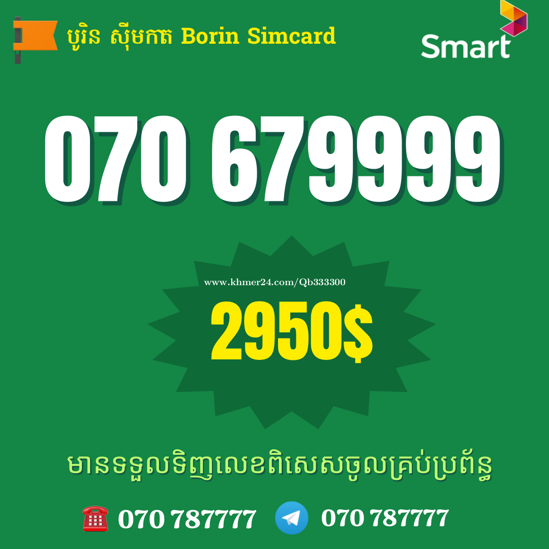 ▶️ មានលក់លេខស្អាតៗគ្រប់ប្រព័ន្ធ និងមានទទួលទិញសុីមលេខពិសេសៗចូលវិញ តំលៃសមរម្យ ធានាមានឈ្មោះនៅក្រុមហ៊ុន 100% ពត៌មានបន្ថែមសូមទំនាក់ទំនង : Telegram : https://t.me/Borin_Ch. & whatApp : 070787777 ☎️ 070 787777 012 666631 = 1950$ - 012 707777 = 15000$ 016 282222 = 3500$ - 081 787878= 4550$ 016 395555 = 1550$ - 016 344444 = $$$$ 015 71 5555 = 1950$ - 015 999111 = 1950$ 016 666695 = 1950$ - 016 686686 = 1550$ 070 999997 = 7500$ - 070 679999 = 2950$ 093 889999 =15500$ - 086 787777 = 7500$ 070 777711 = 2550$ - 070 292222 = 2950$ 010 999966 = 3600$ - 087 999933 = 2950$ 086 999994 = 2850$ - 087 666661 = 2950$ 077 344444 = 4550$ - 086 528888 = 2550$ 011 897777 = 2950$ - 012 759999 = $$$$ 069 865555 = 1600$ - 069 777768 = 1250$ 069 888896 = 1550$ - 015 888852 = 1550$ 086 625555 = 1250$ 015 532222 = 1250$ - 093 333397 = 1250$ 016 333362 = 950$ - 086 873333 = 850$ 069 777706 = 950$ - 069 777795 = 950$ 087 222259 = 550$ - 069 883883 =250$ 087 880088 = 450$ - 086 788778 = 350$ 081 879879 = 250$ - 015 933939 = 168$ 086 657585 = 200$ - 069 888997 = 200$ 093 919696 = 200$ - 016 389898 =180$ 016 289889 = 168$ - 070 277272 = 168$ 087 698787 = 168$ - 016 911991 = 150$ 015 226262 = 150$ - 069 883833 = 120$ 010 897989 = 150$ - 069 336663 = 150$ 069 808686 = 150$ - 086 818787 = 160$ 069 858787 = 150$ - 087 765567 = 150$ 015 541515 = 150$ - 016 411616 = 150$ 015 938989 = 150$ - 086 779955 = 150$ 010 936789 = 150$ - 086 285285 = 150$ 069 889955 = 150$ - 087 269696 = 120$ 087 908989 = 120$ - 010 257168 = 120$ 070 228282 = 120$ - 081 228855 = 120$ 070 998585 = 120$ - 087 668585 = 120$ 086 778686 = 120$ - 016 969977 = 120$ 010 285 168 = 120$ - 016 917168 = 120$ 086 578686 = 120$ - 087 698787 = 120$ 010 626622 = 120$ - 086 876677 = 120$ 069 929922 = 85$ - 093 929922 = 85$ 087 596555 = 65$ - 069 688989 = 150$ 070 882822 = 65$ - 087 399339 = 65$ 096 2000065 = 65$ - 096 9000058 = 65$ 096 7767677 = 120$ - 096 6600060 = 150$ 096 8600008 = 120$ - 096 6700007 = 150$ 096 8558585 = 150$ - 096 7999925 = 150$ - 096 8020000 = 250$ 096 8688868 = 450$ - 096 8886866 = 350$ 096 5756666 = 750$ - 096 5992222 = 650$ 096 2507777 = 950$ - 096 9549999 = 1250$ 096 6456789 = 2850$ -096 8868888 = 3888$ 096 7777770 = 4550$ ***==>Cellcard Number 089 288228 = 65$ - 085 989797 = 65$ 095 297979 = 65$ - 099 756565 = 65$ 095 279797 = 65$ - 095 868685 = 65$ 014 656868 = 120$ - 017 876868 = 120$ 011 233223 = 120$ 017 636767 = 120$ - 095 656767 = 120$ 095 828686 = 120$ - 085 717878 = 120$ 095 919797 = 120$ - 092 700707 = 120$ 077 879696 = 120$ - 089 339696 = 120$ 017 959797 = 150$ 078 298989 = 150$ - 089 908899 = 150$ 085 200100 = 150$ - 077 600100 = 150$ 017 577878 = 120$ - 077 558787 = 168$ 085 779997 = 168$ - 078 908899 = 168$ 017 565657 = 168$ - 078 776868 = 168$ 099 559898 = 168$ - 017 578787 = 168$ 077 909696 = 200$ - 077 939696 = 200$ 078 966969 = 200$ - 095 555353 = 200$ 095 909595 = 250$ - 089 696966 = 250$ 095 222522 = 350$ - 017 799779 = 350$ 089 500168 = 450$ - 095 234168 = 450$ 077 700600 = 550$ - 077 776776 = 850$ 011 898789 = 450$ - 095 213333 = 550$ 077 700600 = 450$ - 011 700900 = 550$ 085 999289 = 450$ - 085 886688 = 550$ 0123 78999 = 550$ - 017 444465 = 550$ 012 826888 = 850$ - 012 533999 = 850$ 078 222281 = 500$ - 099 222260 = 450$ 095 222285 = 550$ - 078 222295 = 550$ 095 333328 = 550$ - 077 555534 = 550$ 089 333319 = 550$ - 095 887887 = 550$ 078 333381 = 550$ - 099 333317 = 500$ 011 555517 = 650$ - 089 984444 = 650$ - 017 824444 = 650$ 077 444400 = 750$ - 012 788778 = 950$ 078 555855 = 850$ - 085 777077 = 750$ 078 372222 = 750$ - 077 626262 = 1950$ 089 777786 = 850$ - 099 666687 = 850$ 011 564444 = 950$ - 077 802222 = 1250$ 077 666685 = 1250$ - 077 345555 = 1950$ 099 888896 = 1250$ - 077 888897 = 1550$ 078 303333 = 1550$ - 099 765555 = 1550$ 089 236666 = 1550$ - 017 285555 = 1550$ 099 888822 = 1850$ - 092 999955 = 1950$ 089 968888 = 2550$ - 078 616666 = 2850$ 077 666333 = 2550$ - 092 333222 = 1950$ 011 848888 =3550$ - 011 897777 = 2950$ 077 247777 = 2950$ - 095 900900 = 2950$ 012 707777 = 15500$ 089 989989 = 4550$ - 099 666168 = 3850$ 014 777077 = 750$ - 014 888088 = 850$ 014 888008 = 850$ - 014 700800 = 550$ 014 800900 = 950$ - 014 899899 = 1550$ 095 234168 = 500$ - 014 222268 = 450$ 014 333368 = 450$ - 014 444468 = 450$ 014 777786 = 550$ - 014 888826 = 550$ 014 900168 = 450$ - 014 555568 = 650$ 014 888856 = 850$ - 014 555505 = 900$ 014 555515 = 900$ - 014 555522 = 900$ 014 334444 = 950$ - 014 587777 = 1250$ 014 222221 = 1150$ - 014 333331 = 1150$ 014 555551 = 1250$ - 014 555552 = 1250$ 014 666616 = 1200$ - 014 898888 = 3850$ 014 553333 = 1250$ - 014 555553 = 1800$ 014 888848 = 2000$ - 014 888858 = 2000$ 014 888855 = 2000$ - 014 888838 = 2550$ 076 9789789 = 450$ - 076 8789789 = 450$ 076 2242222 = 650$ - 076 6565665 = 150$ 076 3445678 = 250$ - 076 8668868 = 150$ 076 7898999 = 350$ - 076 2345168 = 450$ 076 9999924 = 750$ - 076 9999991 = $$$$ ***Metfone Numbers 060 338333 = 350$ 066 838888 = 4500$ - 066 797777 = 4550$ 088 3563333 = 850$ - 031 8563333 =350$ 088 9565555 = 950$ - 088 2628888 = 1850$ 097 7827777 = 1850$ - 088 2268888 = 1850$ 088 5528888 = 1550$ - 097 9579999 = 2550$ Smart - Cellcard - Metfone 📶 015 999111 📶 089 999111 }3300$ 📶 067 999111 …………………………………… 📶 098 717878 📶 085 717878 : 200$ ………………………………………. 📶 069 959797 📶 098 678997 📶 095 959797 180$ 📶 077 678997 } 200$ Tel: 070 787777