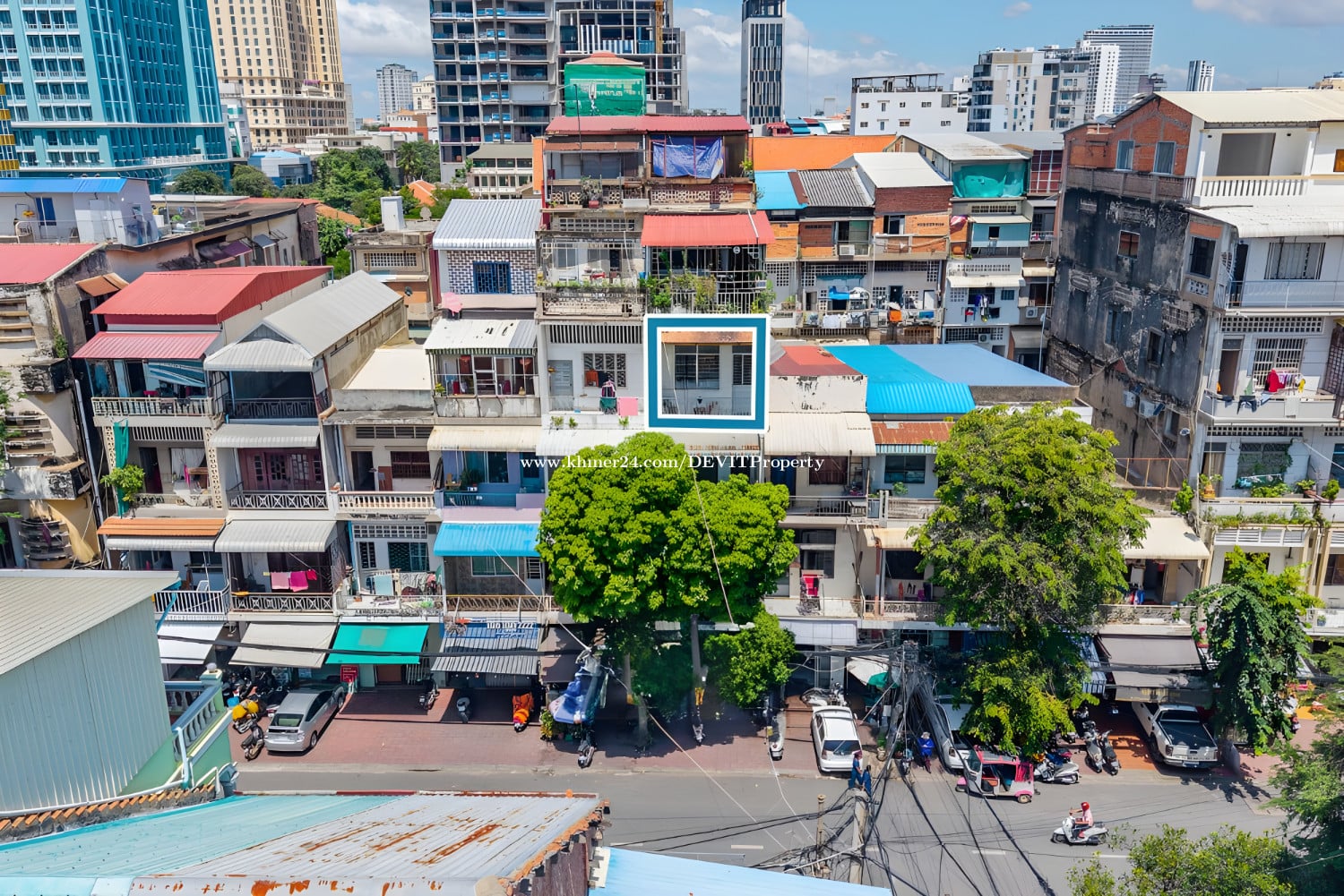 Positioned in the lively Phsar Kandal 1 area of Daun Penh, this unrenovated 1-bedroom flat presents a strong opportunity for buyers seeking a centrally located property in Phnom Penh’s urban core. Set on the 3rd floor with a total of 54sqm, the layout includes a living area, kitchen space, one bathroom, and a front-facing balcony offering natural light and views of the surrounding neighborhood. The unit will require a full renovation, ideal for those who want to personalize a city home or upgrade the flat into a rental asset. With modern updates, this space has solid potential to generate returns or serve as a convenient residence close to everything. Surrounded by markets, cafés, shops, and daily amenities, this location places you right in the middle of the city’s movement, making everyday life and local discoveries easy. Soft title, and the sale price already includes title transfer fee, offering simplicity and peace of mind for buyers. A valuable find in riverside district, ready for the right buyer to unlock its full potential. Nearby: Exchange Square Vattanac Tower, Canadia Tower Wat Phnom, Night Market Independence Monument, Royal palace