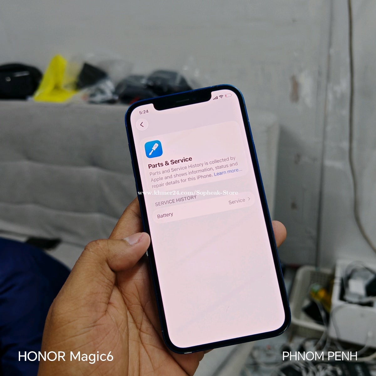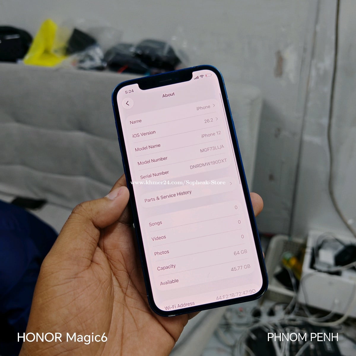 12 64GB ហ្សីន១០០% ថ្មកាន់ ធានាអោយមួយខែ