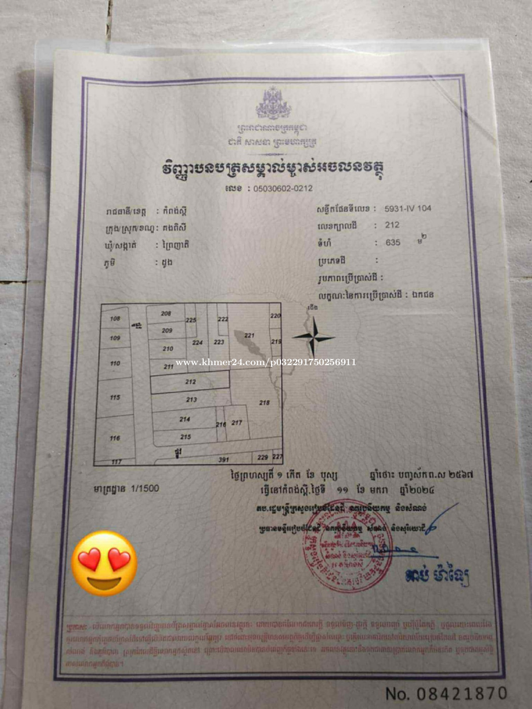 ដីលក់ ទីតាំងដីនៅខេត្តកំពុងស្ពឺ
