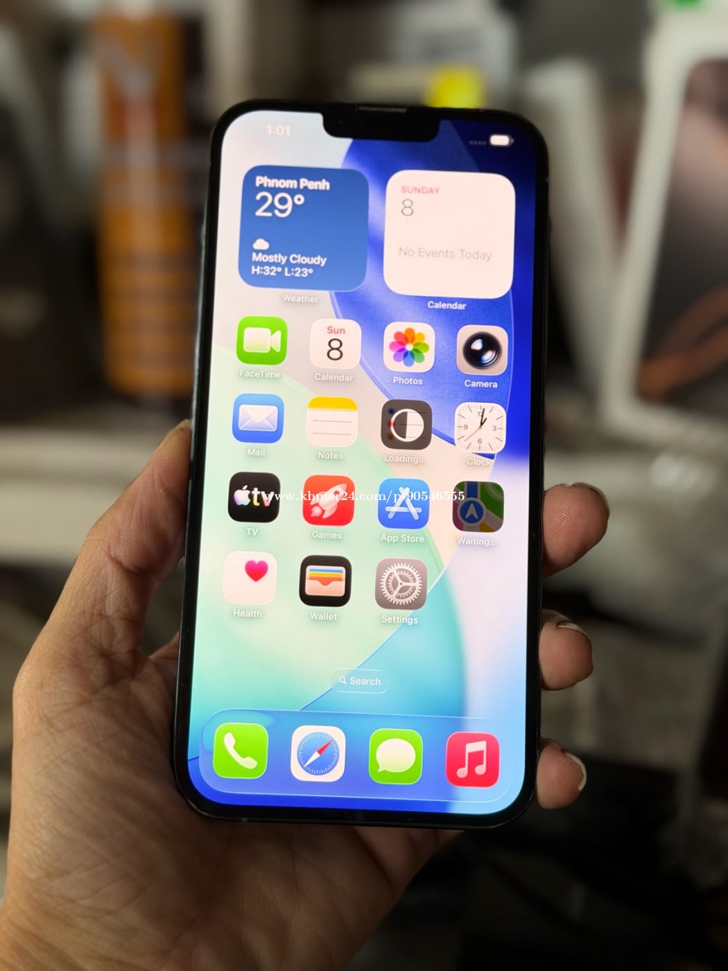 iPhone 13pro max សានុំសុីនណែន 98.99% LL/A 128g មិនដែលដោះ all good