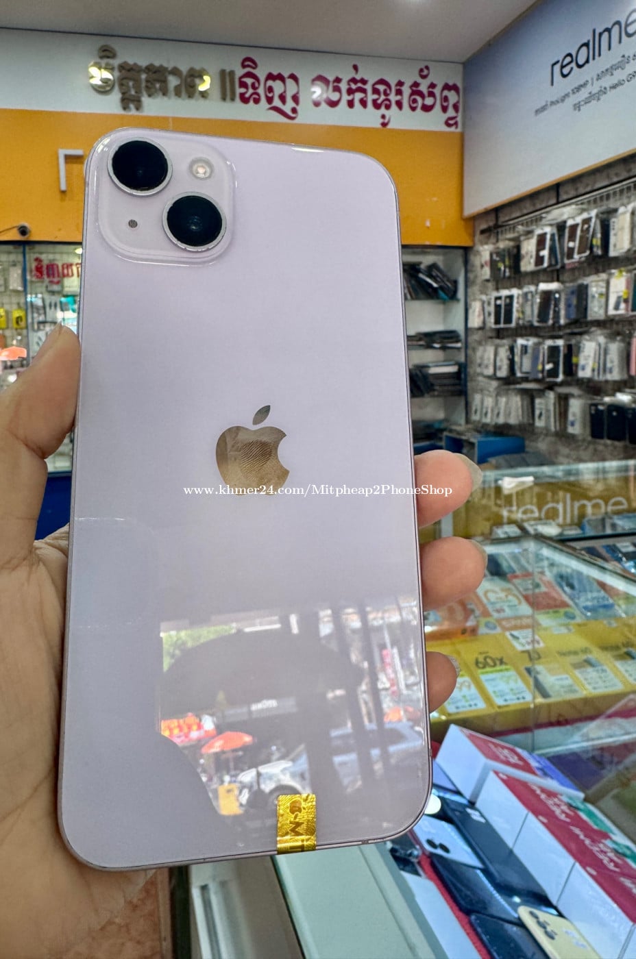 iPhone 14plusមូយទឹក128Gប្រេីសុីមក្រៅបាន2(lock ESim)