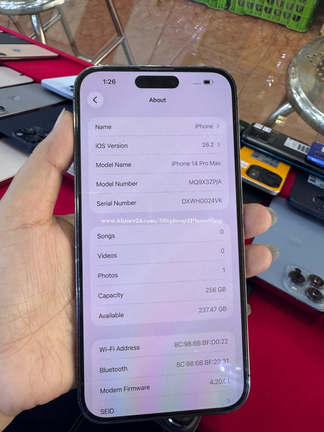 iPhone 14promax មួយទឹក256Gរបស់សាំងហ្គាពួរប្រេីសុីម1 ESim1