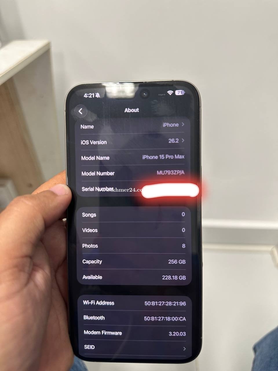 15 Pro Max ZP 256G សានុំស៊ីន​ មិនដែលជួសជូល