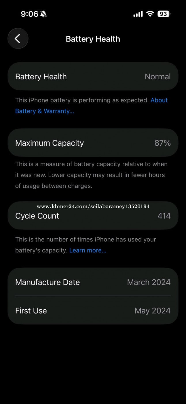 ទូរស័ព្ទនៅថ្មី99% សាណុំស៊ីន មិនដែរជួសជុល មានប្រអប់full set ថ្មសល់87% សាកបាន 411ដង ទូរស័ព្ទប្រើថែណាស់ អាចមកមើលបាន តេលេក្រាម 092333xxxClick To Call