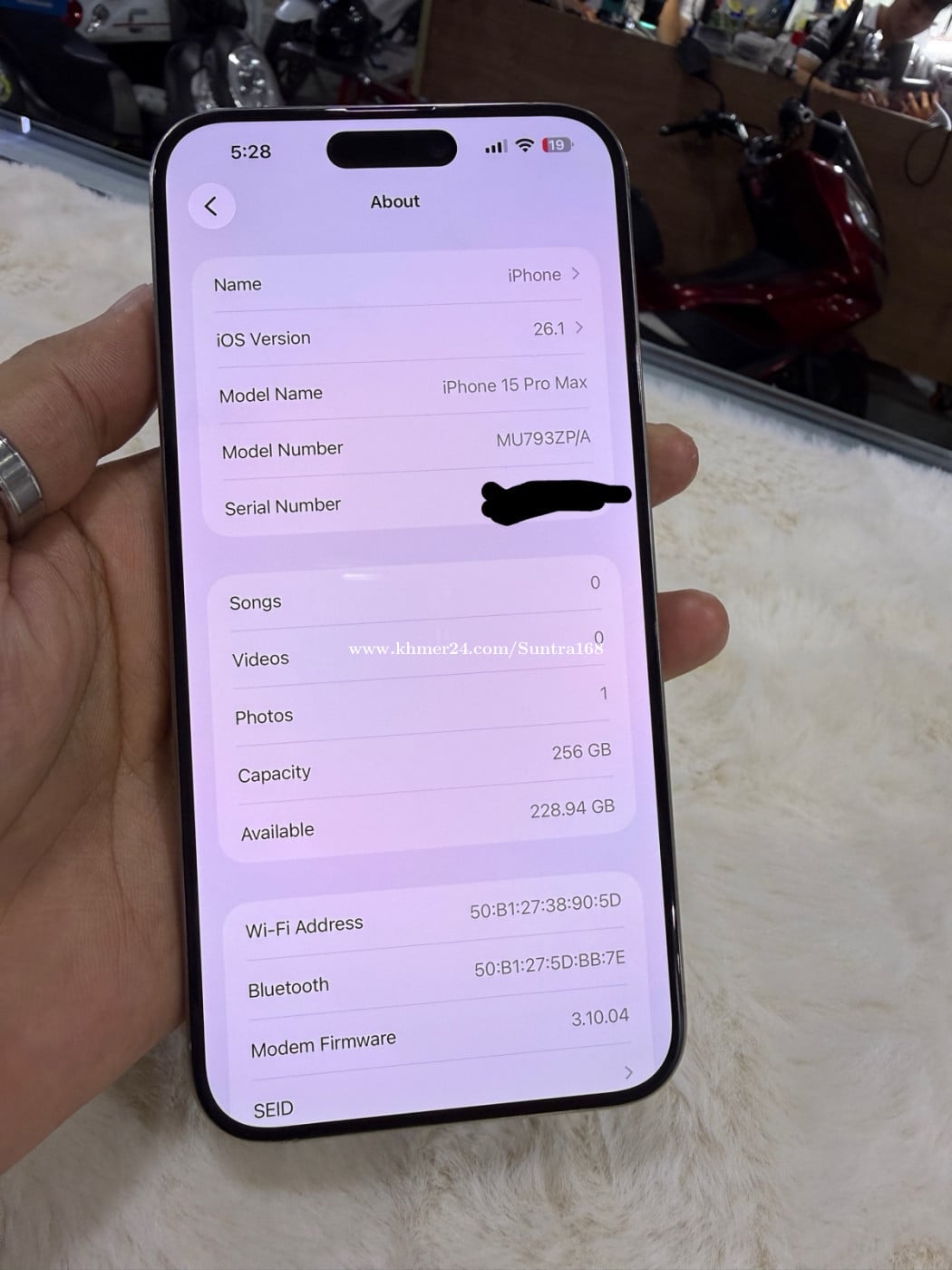 Iphone 15ProMax Zp 256G សំណុំសុីនណែន ស្អាត97% https://t.me/suntraphone 👉Iphone11 _ គូទសាក = 10$ _ កាមេរ៉ាមុខ = 5$ _ កាមេរ៉ាក្រោយ = 15$ _ ថ្ម =13$ 👉Iphone11P _ កាមេរ៉ាមុខ = 5$ _ គូទសាក = 25$ _ Senser = 5$ _ Speaker = 3$ _ Flash = 3$ _ ដុំញ័រ = 3$ _ ថ្ម = 13$ 👉Iphone 11PM _ គូទសាក = 25$ _ កាមេរ៉ាមុខ = 5$ _ កាមេរ៉ាក្រោយ = ❌ _ ថ្ម = 18$ 👉Iphone 12 _ គូទសាក =12.5$ _ កាមេរ៉ាមុខ = 5$ _ កាមេរ៉ាក្រោយ = 20$ _ ថ្ម = 13$ 👉Iphone 12 mini _ គូទសាក =12.5$ _ កាមេរ៉ាមុខ = 5$ _ ថ្ម = 13$ 👉Iphone 12P _ គូទសាក = 12.5$ _ កាមេរ៉ាមុខ = 5$ _ កាមេរ៉ាក្រោយ = ❌ _ ថ្ម = 13$ 👉Iphone 12PM _ គូទសាក = 20$ _ កាមេរ៉ាមុខ = 5$ _ កាមេរ៉ាក្រោយ = 45$ _ Speaker = 8$ _ ថ្ម = 18$ 👉Iphone 13 _ គូទសាក = 12.5$ _ កាមេរ៉ាមុខ = 5$ _ កាមេរ៉ាក្រោយ = 20$ _ ថ្ម = 13$ 👉Iphone 13Mini _ ថ្ម = 12.5$ _ គូតសាក = 15$ _ កាមេរ៉ាមុខ = 5$ 👉Iphone 13Pro _ថ្ម = 18$ _គូតសាក = 20$ _កាមេរ៉ាមុខ =5$ 👉Iphone 13PM _ គូទសាក = 20$ _ កាមេរ៉ាមុខ = 5$ _ កាមេរ៉ាក្រោយ = ❌ _ Senser = 5$ _ Speaker = 5$ _ ដុំញ័រ = 3$ _ ថ្ម = 20$ 👉Iphone 14PM _ គូទសាក = 20$ _ កាមេរ៉ាមុខ = 8$ _ កាមេរ៉ាក្រោយ = 45$ _ ថ្ម = 20$ 👉Iphone 14 _ ថ្ម = 15$ 👉Iphone 14Pro _ ថ្ម = 18$ _គូតសាក = 20$ Updated 10 - 02 - 26