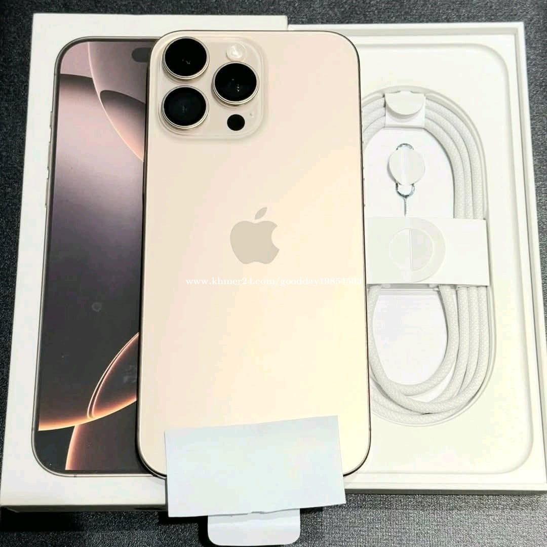 16 Pro Max ស្អាតដូចថ្មី99% ថ្ម100 ធានានៅ8ខែ សាក70ដង Fullset 256GB X/A មានប្រអប់