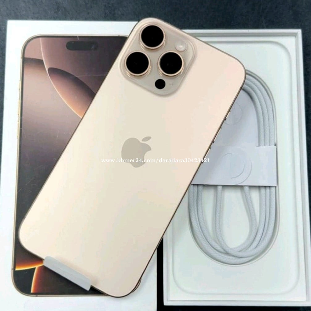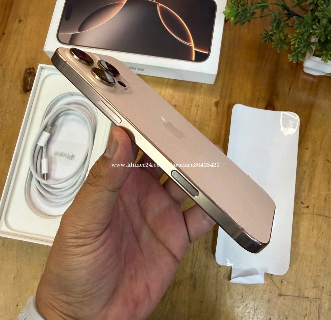 16 Pro Max ស្អាតដូចថ្មី99% ថ្ម100% ZA Sim2 Fullset 256GB មានប្រអប់