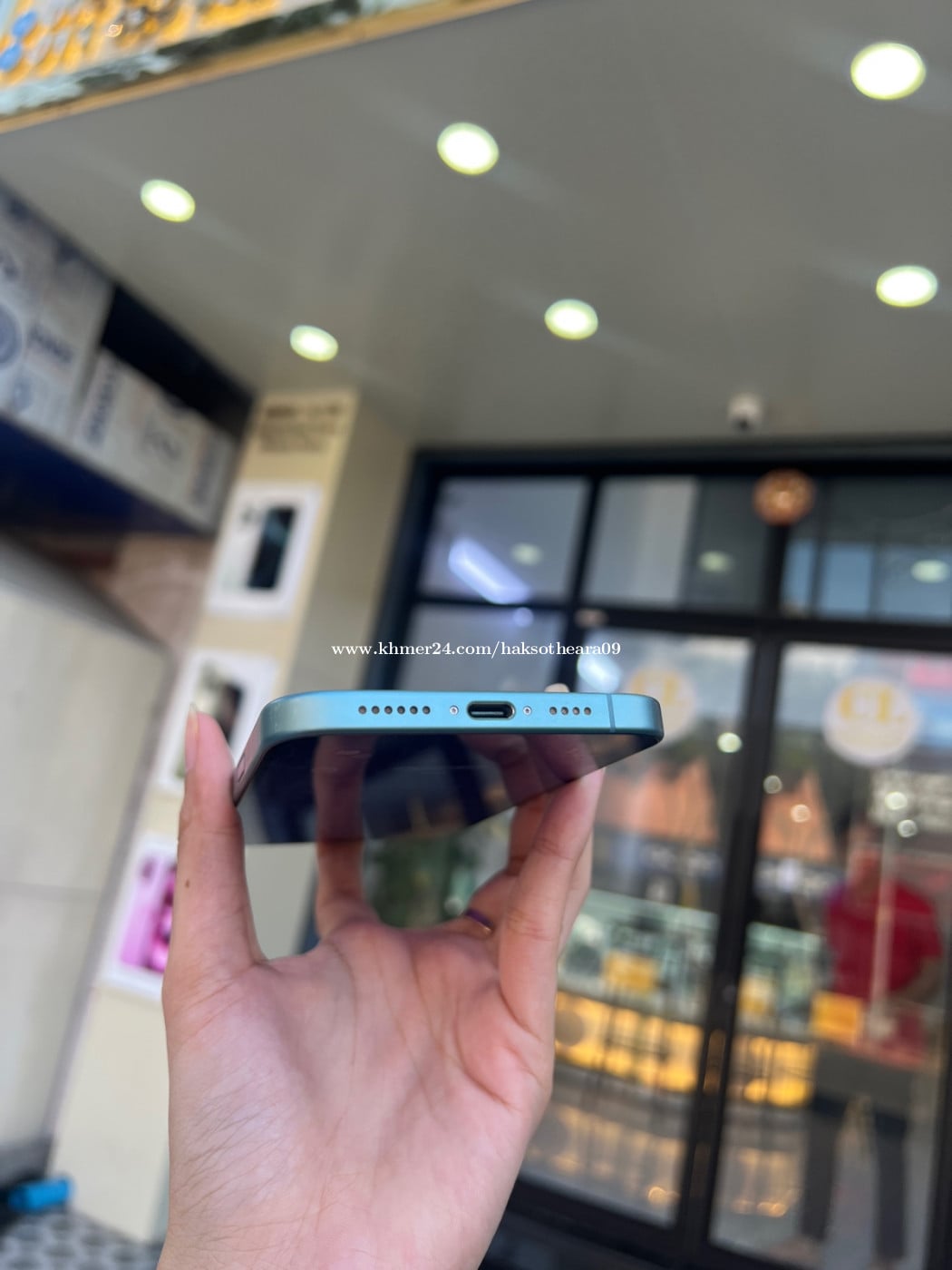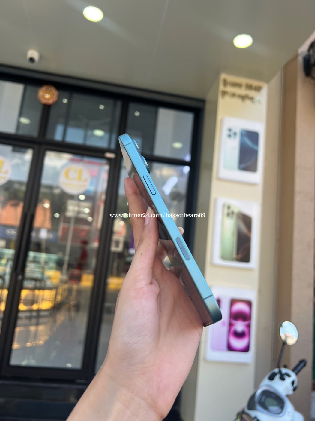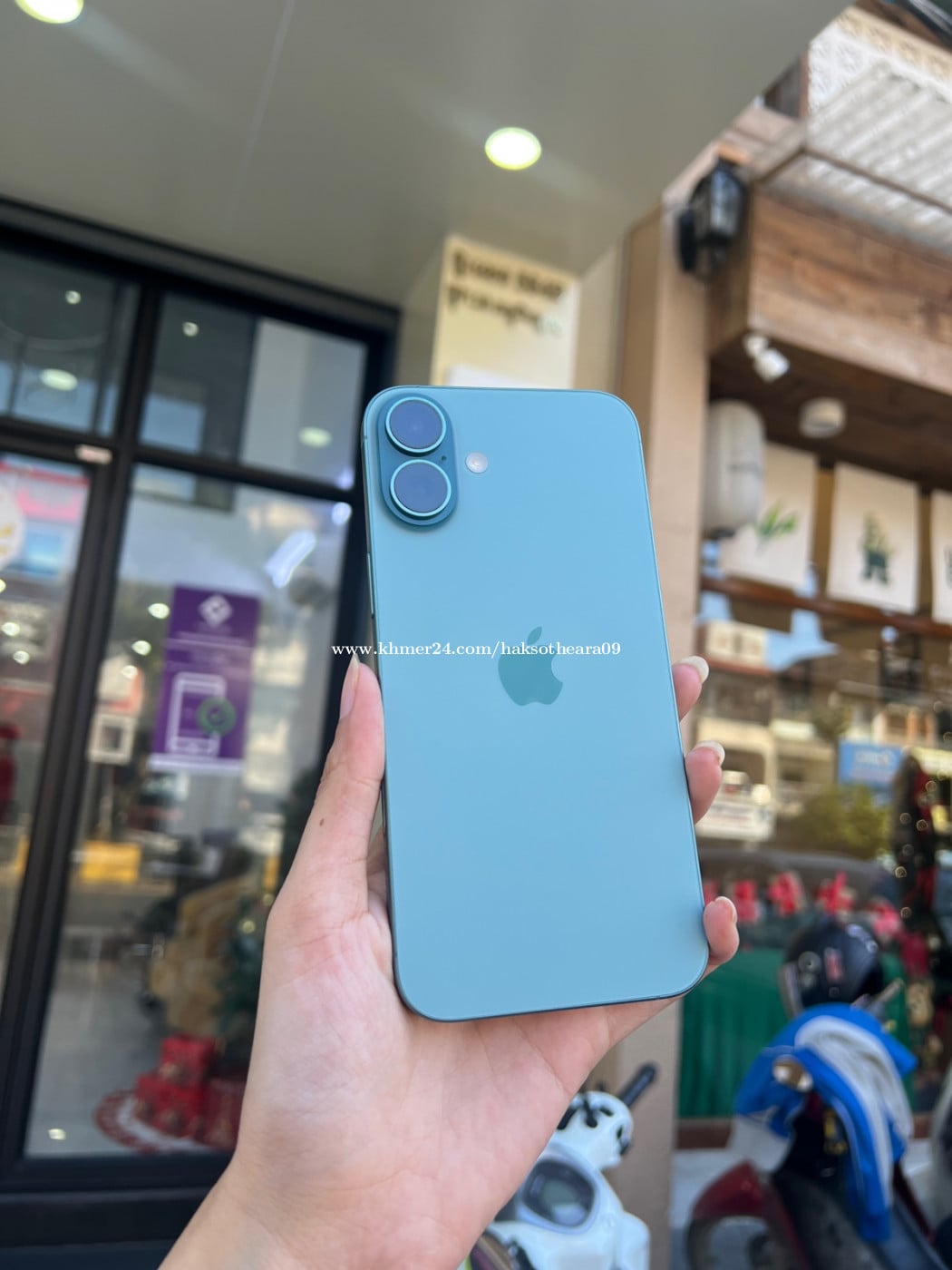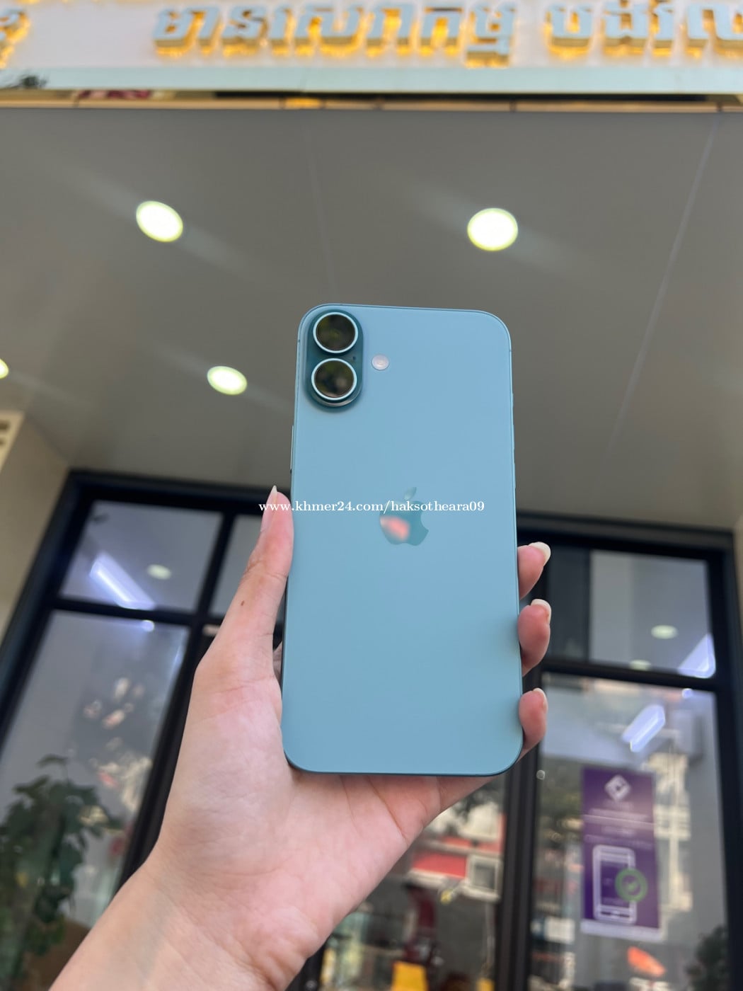 iPhone 16plus 128g LLA មួយទឹកស្អាត99% ថ្ម100% Coler Teal តម្លៃ 690$