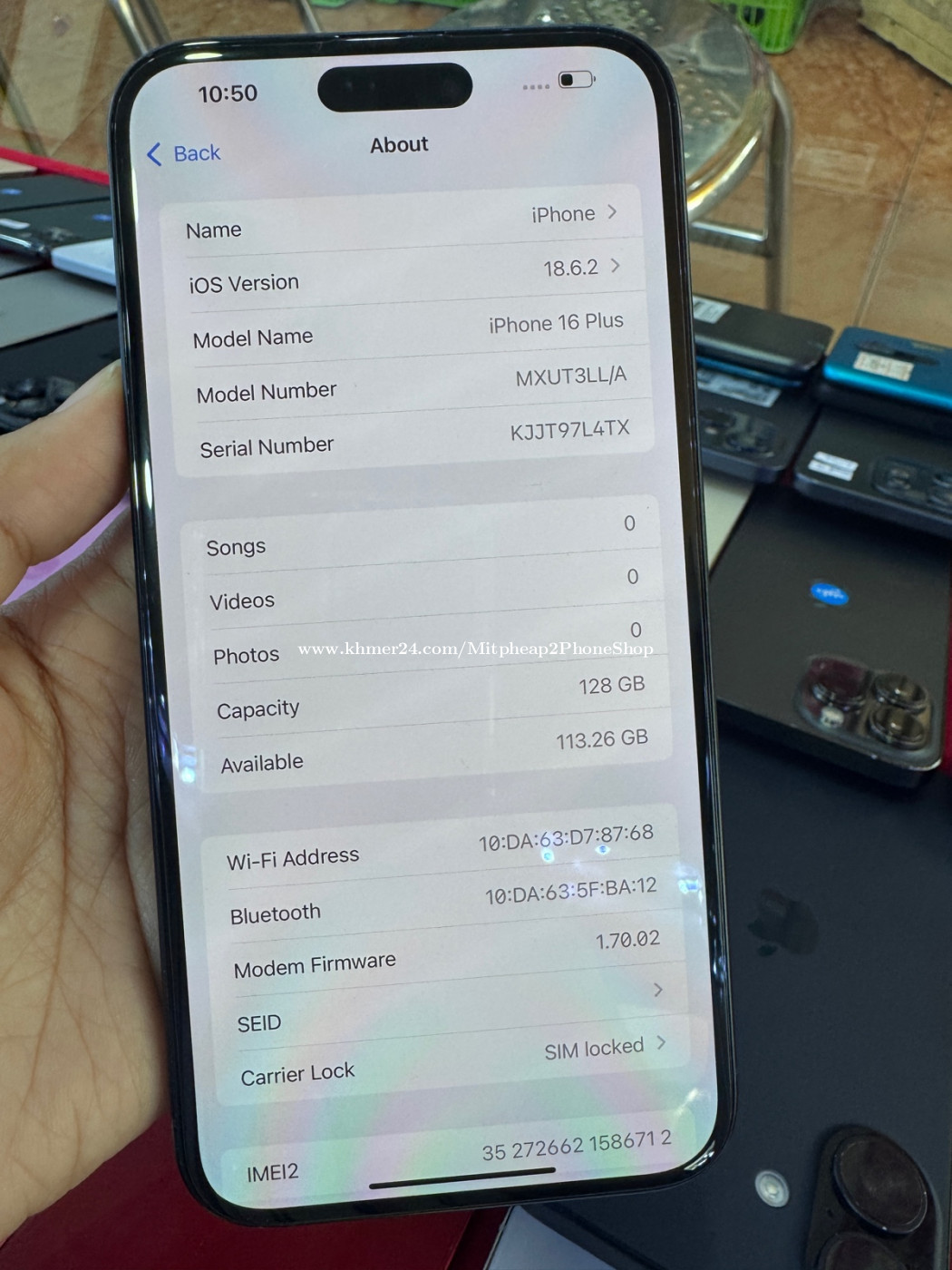 iPhone 16plusមូយទឹករបស់អាមេរិក128Gដាក់សុីមប្រើបាន2(lock ESim)
