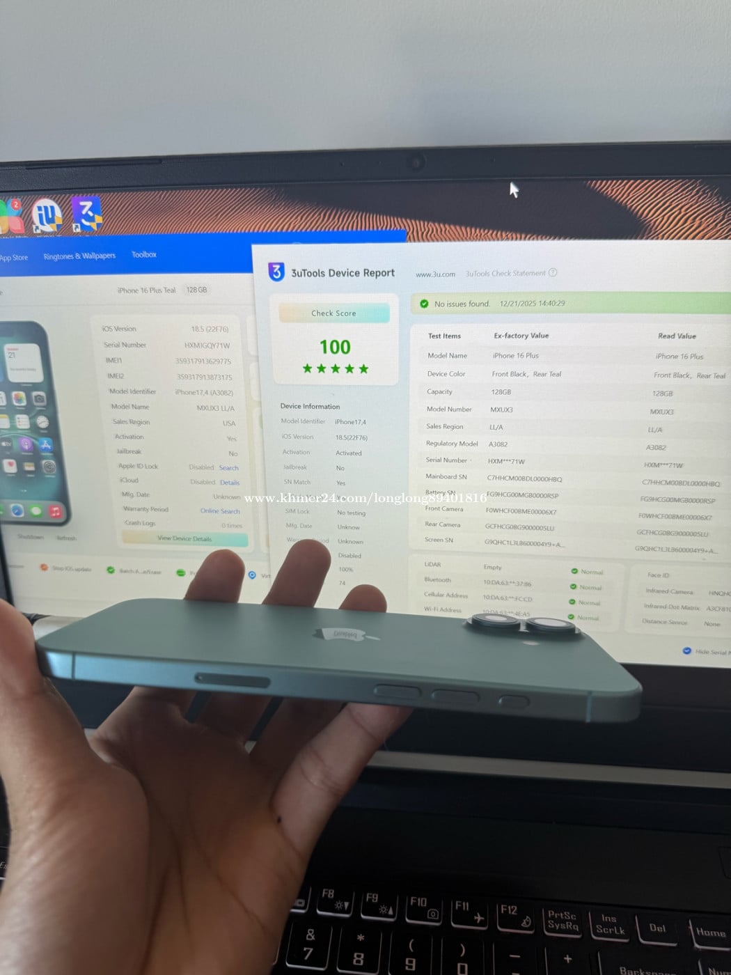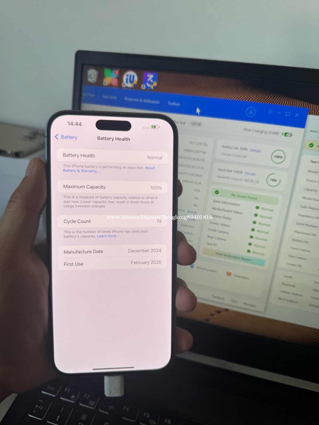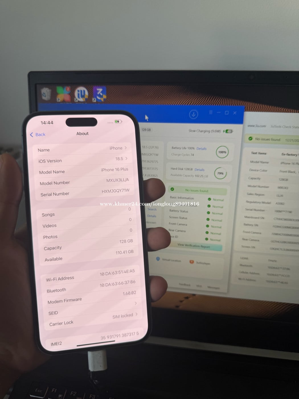 All original. Anything work good. Lock eSIM. Can use 2 SIM card. Battery ๐ 100%. Can face to face deal. Location:แแแแแแแ Phnom Penh This is last price. 16plus green 128G Telegram @BaoBao7553