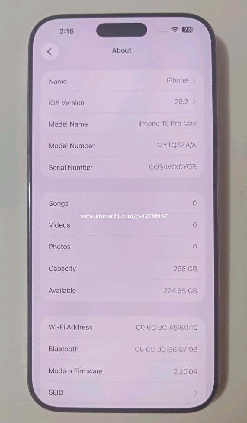 16pm za sim2 99.9% 256gសំណុំស្អាតអត់ស្នាមsim2 $90001279xxxClick To Call7