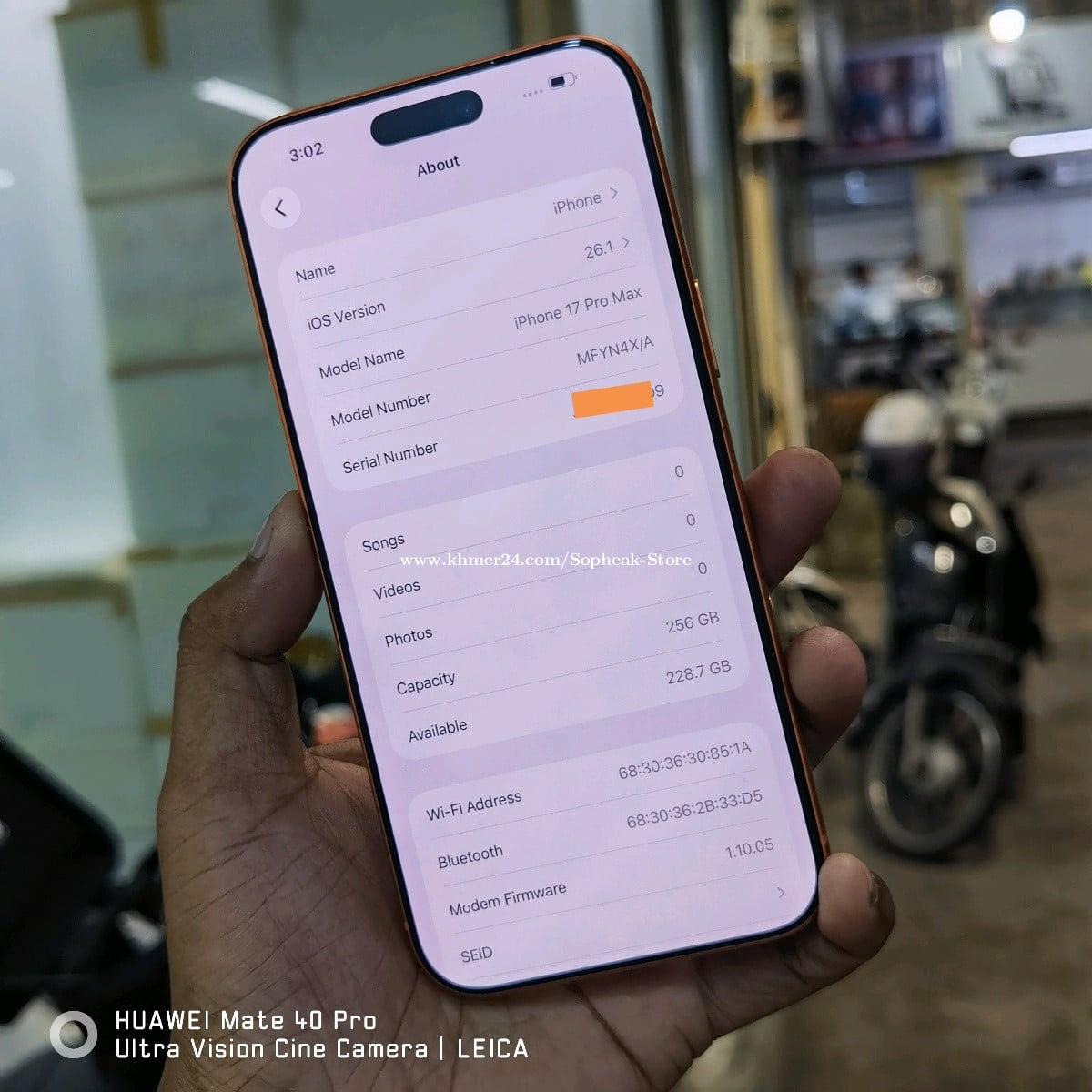 17promax 256G នៅធានាជិត ២ឆ្នាំ សាកថ្ម 12 ដង ទឹកក្រូច ស្អាតដូចថ្មី