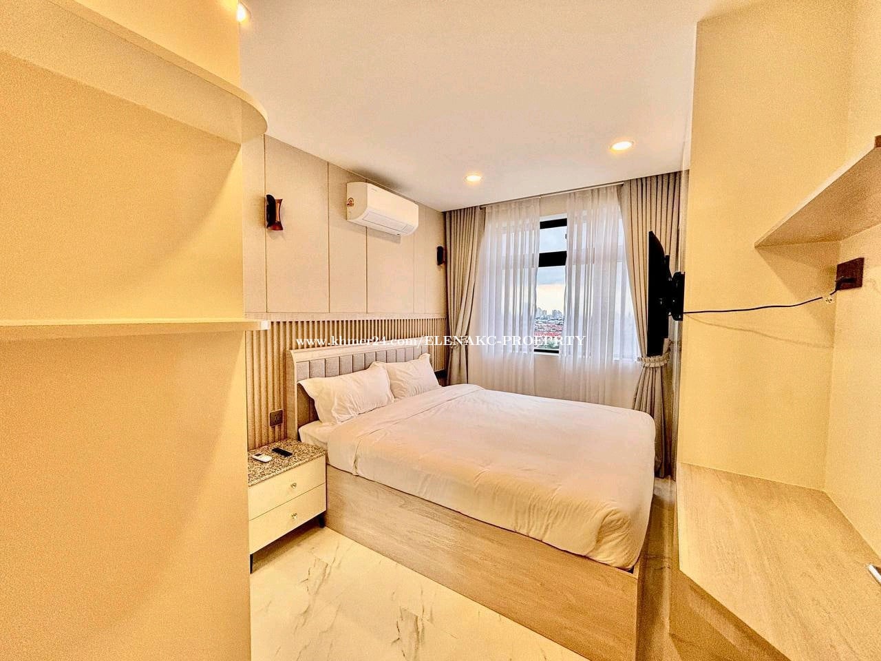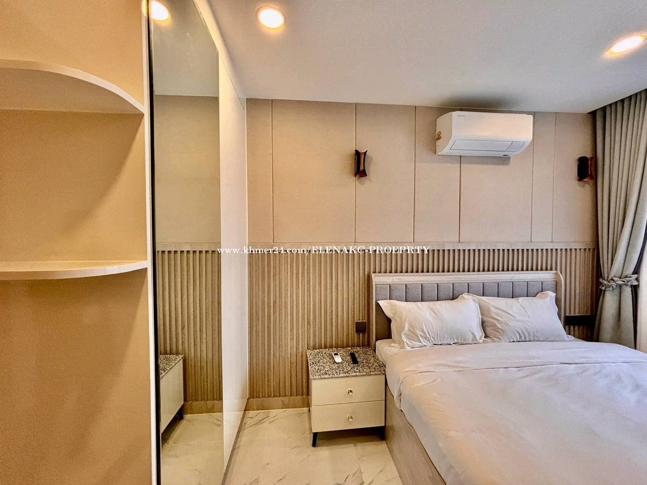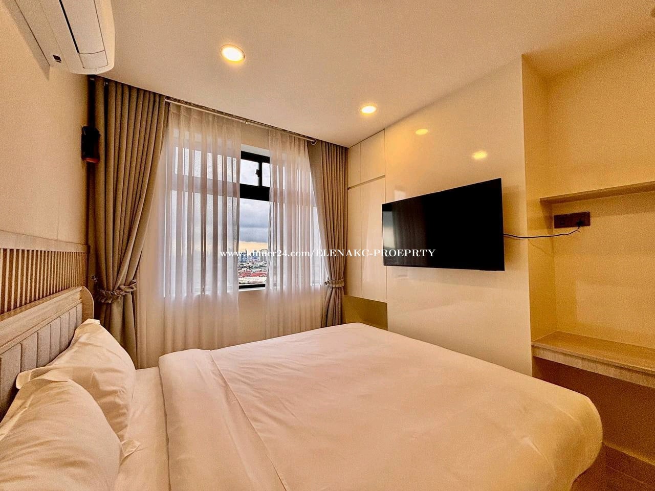 *1 Bedroom, 1 Bathroom, 1 Balcony * Unit Number: 1206C * Floor: 12th Floor * View: Facing to Grand Phnom Penh, Win Win Memorial and Sunset view * Net Size: 49.16sqm *Cross Size: 63.95sqm * Original Prince: 590$/month *Special Offer: 540$/month * Included - Electric Appliance - Building Management - Wifi Service - Enjoying Full Access to Building Facilities - Security service * Excluding: - Electric :0.25$/ KW - water: 0.65 $/m3 - Parking: Car: 35$/month, Moto: 10$/month