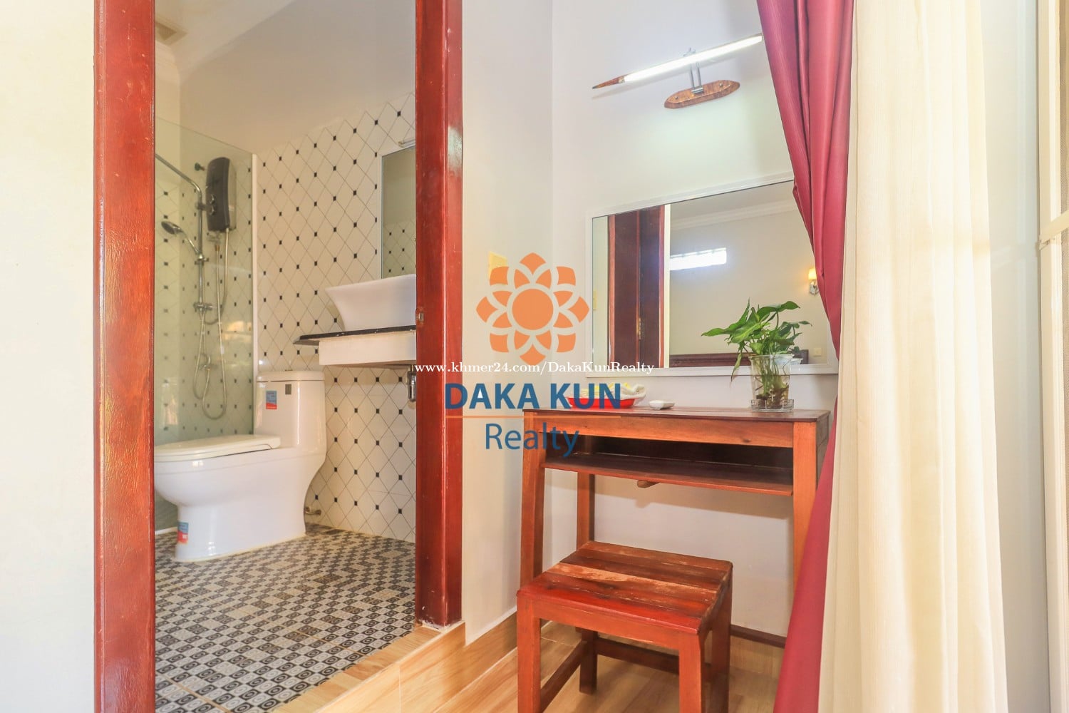 Contact Daka Kun Realty at +8558989xxxClick To Call4 ( Whatsapp, Wechat, Line, Telegram ) or mail to : inq****@dakakunrealty.comClick To Sent Email Property ID: DV343 Rental price: USD 300 per month • 2 Bedrooms and 3 bathrooms • Living area and kitchen • Fully furnished • Private balcony • Garden and parking space • Located in Slor Kram, Siem Reap city www.dakakunrealty.com #202 Taphul St., Krong Siem Reap, Cambodia