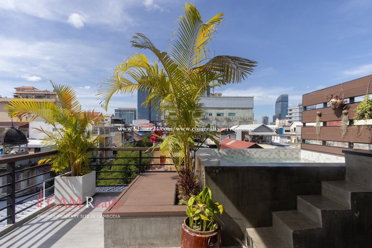 Phnom Penh , 2 Bedrooms Renovated Apartment with Private Pool and Rooftop Terrace for Rent In Phsar Kandal, Daun Penh