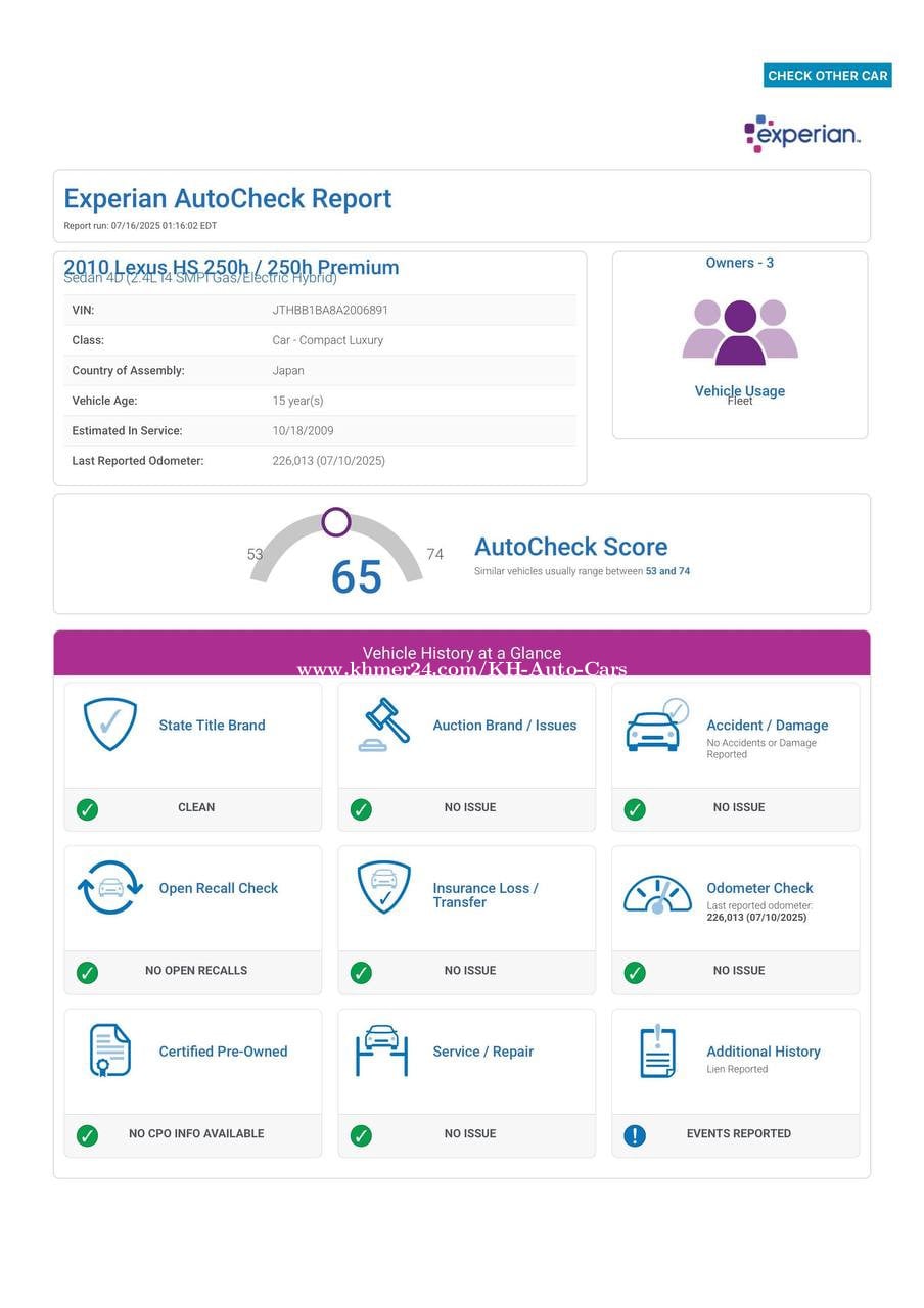 KH Auto សូមស្វាគមន៍🙏 💵តំលៃត្រឹមតែ : $27000 (ឡានក្រដាសពន្ធ) 🚘ម៉ូឌែល(Model) : LEXUS HS 250h Full-Premium Option 🚘ឆ្នាំផលិត(Year) : 2010 🚘ពណ៌ខាងក្រៅ (Exterior) :White (ពណ៌ស) 🚘ពណ៌ខាងក្នុង (Interior) : Grey-White (ពណ៌ប្រផេះស) 🚘ប្រភេទប្រេងឥន្ធនៈ (Fuel) : Hybrid 💸ការធានារយៈពេលមួយខែទៅលើ 🎉ម៉ាស៊ីន 🎉ប្រអប់លេខ 🎉អាគុយ 🎉ABS 💸ទិញចូល លក់ចេញ និង បង់រំលស់ 📞ព័ត៌មានលម្អិត សូមទំនាក់ទំនងមកកាន់ KH Auto➗ 📲012515xxxClick To Call (Telegram) 📲087233xxxClick To Call (Telegram) 📲077228xxxClick To Call (中文) 🏦ទីតាំងនៅជិតភ្លើងស្តុបទេពផន🙏។ 📺TikTok: https://www.tiktok.com/@tepphornauto 📺Telegram Channel: https://t.me/TepPhornAutocars