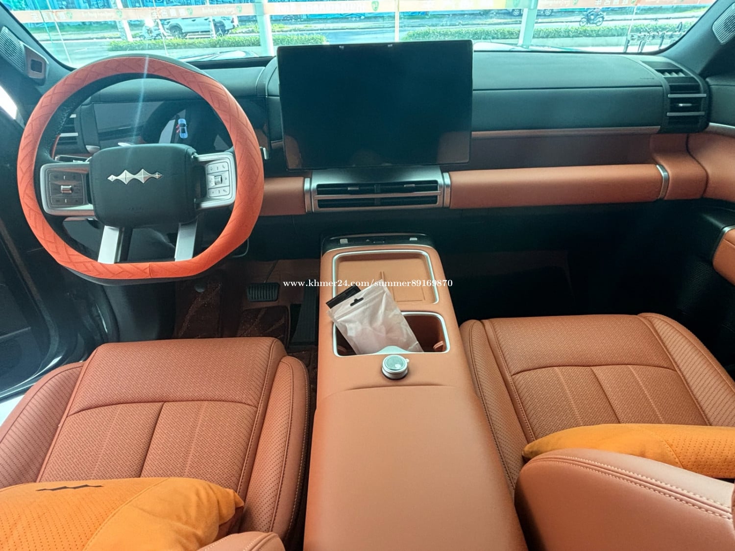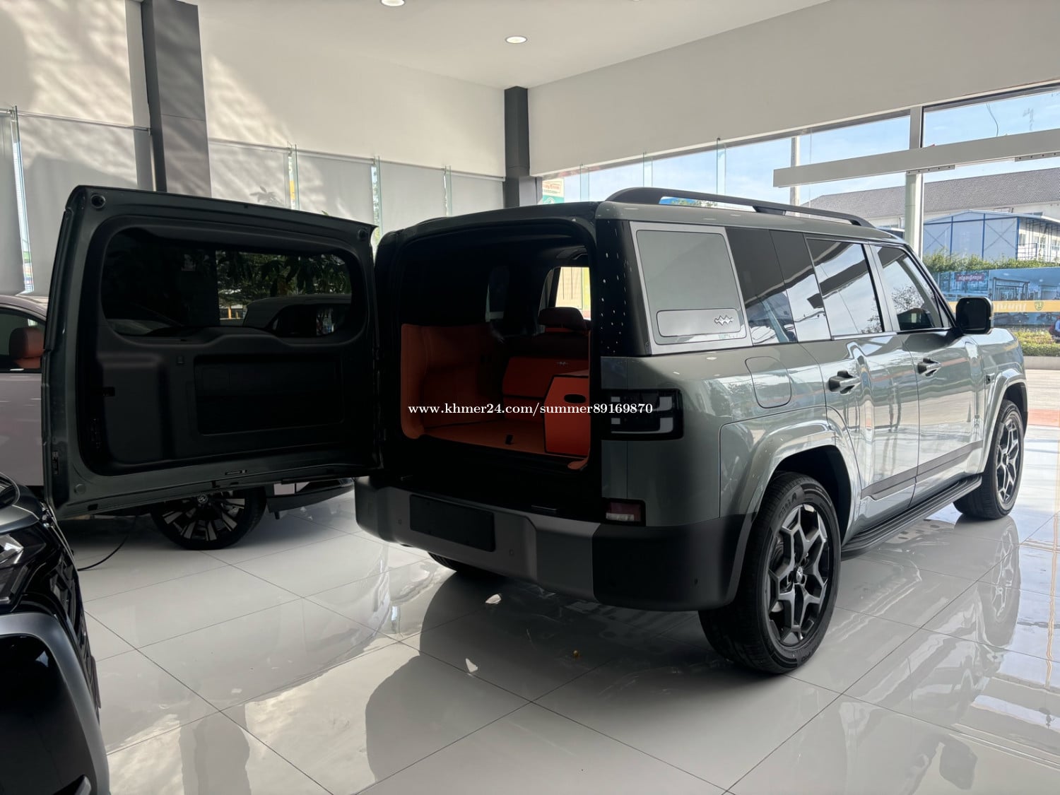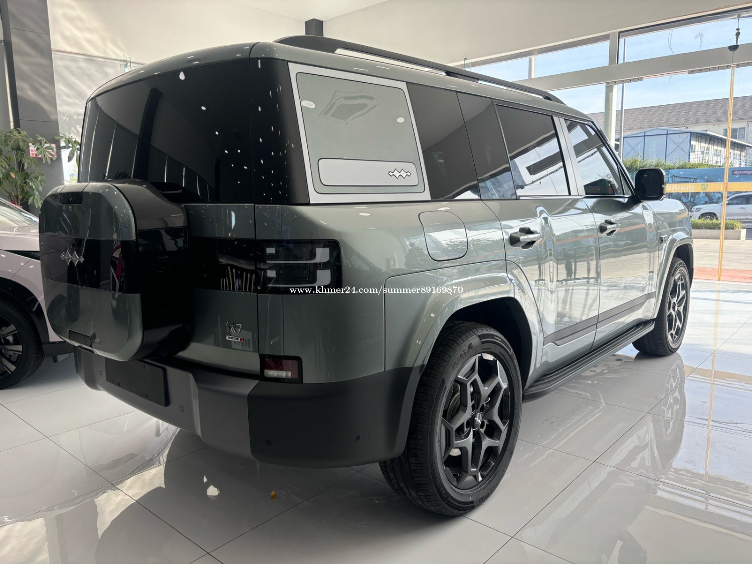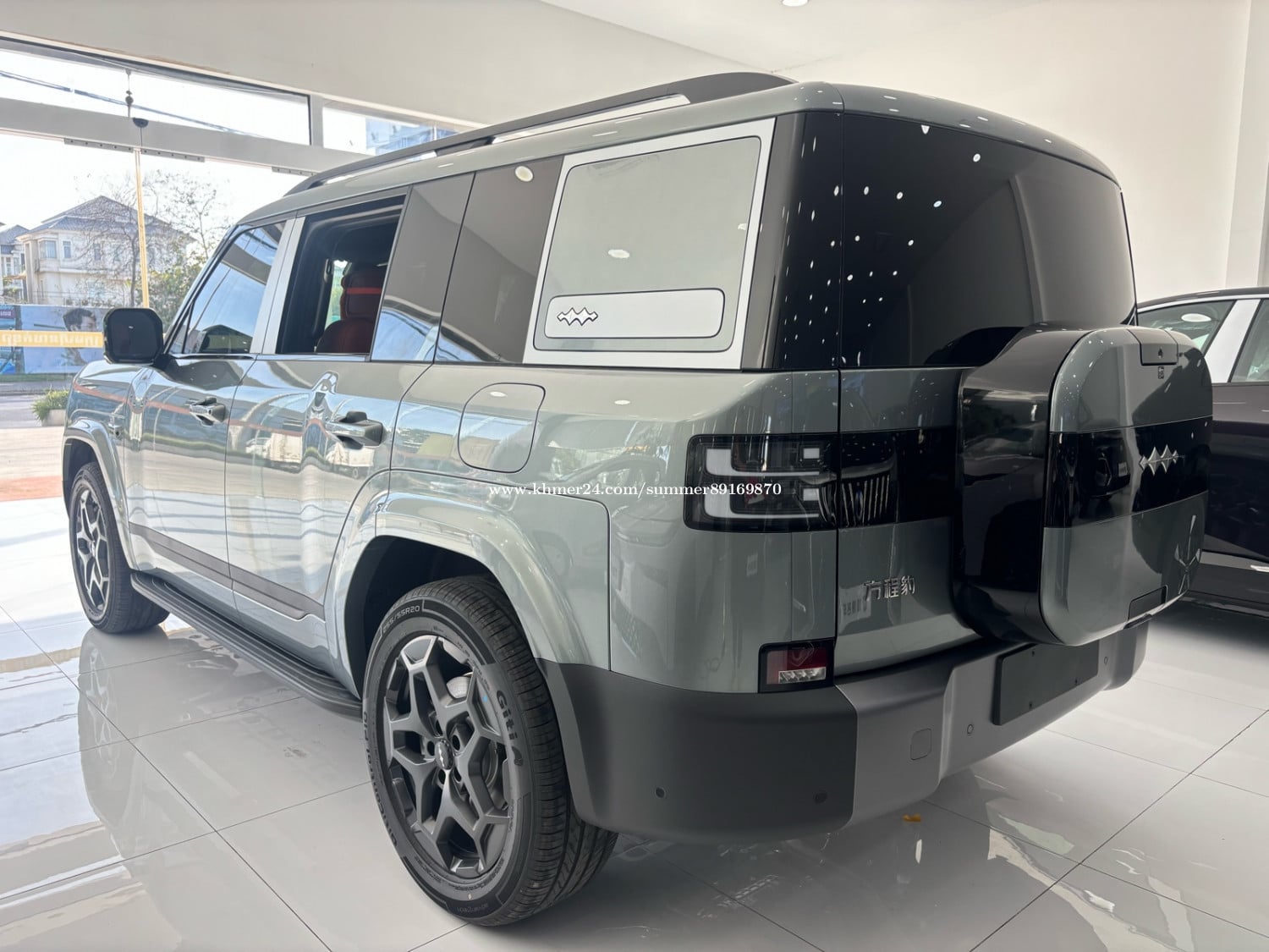 2025 leopard 7 4WD ultra ទំហំស៊ីឡាំង 发动机排量:1.5T កំលាំងសេះម៉ាស៊ីន 发动机马力:156 Ps កំលាំងរមួលម៉ាស៊ីន 发动机扭矩:225 N•m កំលាំសេះសរុបម៉ូទ័រ 电动机总马力:360kW/490 Ps កំលាំងរមួលសរុបម៉ូទ័រ 电动机总扭矩:620 N•m កលាំងអគ្គិសនីម៉ូទ័រមុខ 前电机最大功率:160kW/218 Ps កំលាំងរមួលខ្លាំងបំផុតម៉ូទ័រមុខ 前电机最大扭矩:260 N•m កំលាំងអគ្គិសនីម៉ូទ័រក្រោយ 后电机最大功率:200 kW/272 Ps កំលាំងរមួលខ្លាំងបំផុតម៉ូទ័រក្រោយ 后电机最大扭矩:360 N•m សន្ទុះល្បឿនពី0ដល់100 0—100 km/h:4.5 sវិនាទី កំរិតស៊ីសាំងពេលភាគរយថ្មនៅតិច 最低电量油耗:6.4 L/100km ល្បឿនអតិបរមា 最高车速:190 km/h អគ្គិសនីរត់បានចំង៉ាយ CLTC纯电续航:190 km សាំងរួមអគ្គិសនីរត់បានចំង៉ាយ CLTC综合续航:1300 km ទំហំផ្ទុកអគ្គិសនីក្នុងអាគុយ 电池容量:35.6 kWh ចំណុះធុងសាំង 油箱:60L កំលាំងសាកលឿន 快充功率:72 kw រយះពេលសាកលឿន 快充时间:0.29នាទី小时 អាចបញ្វេញភ្លេីងមកក្រៅរហូតដល់ 对外放电功率:6 kw ខ្នាតរថយន្ត 尺寸:4999×1995×1865mm ដំណេីកាដោយប៉ុងពីរ 驱动方式:四驱 ធានារយះពេល 质保:6ឆ្នាំ年或15ម៉ឺន万公里