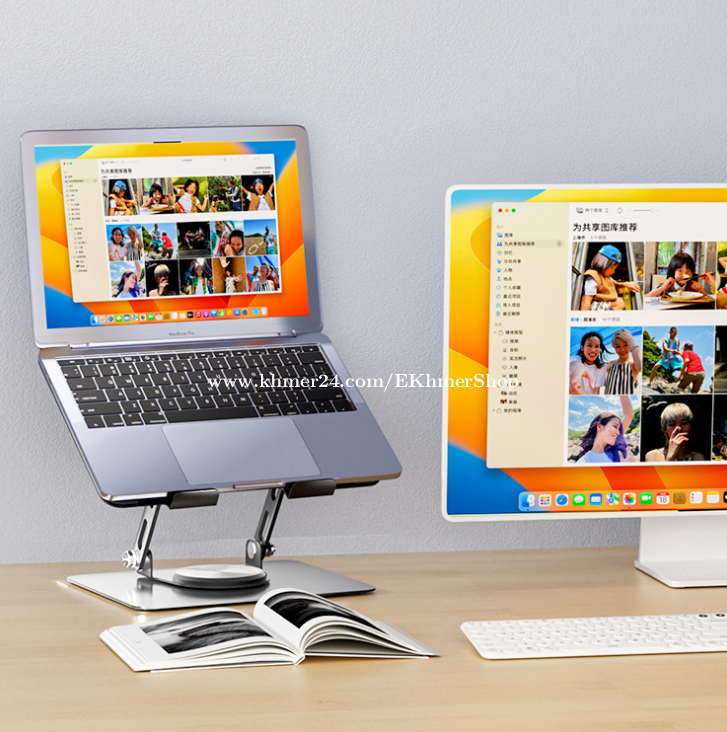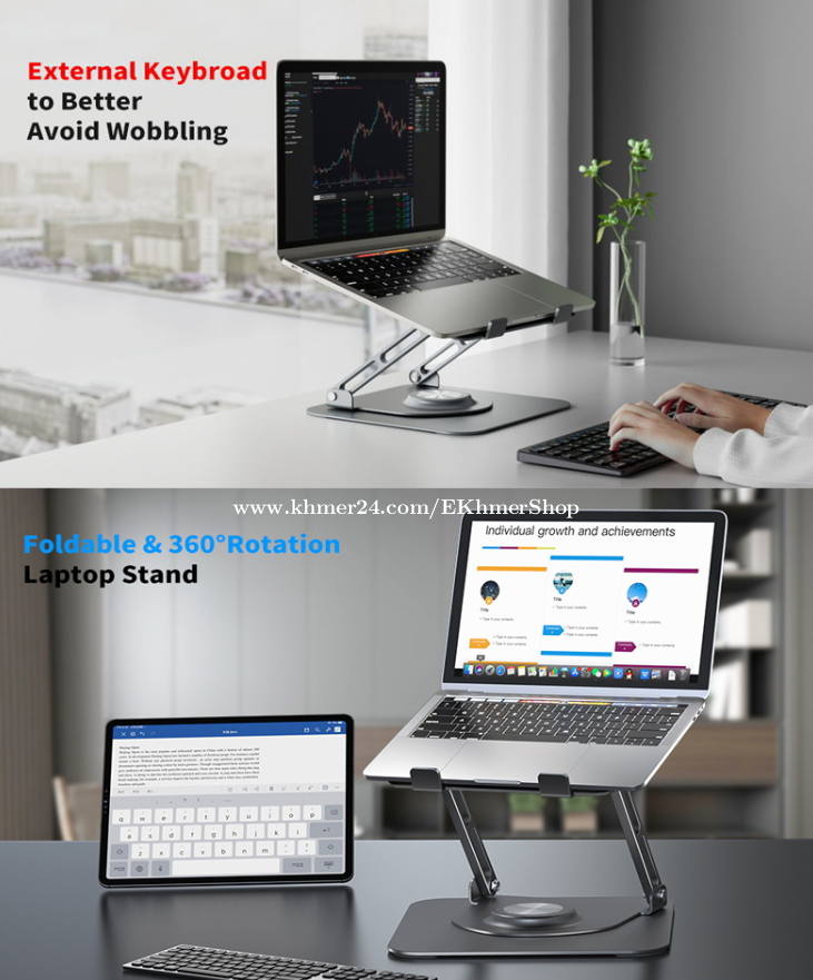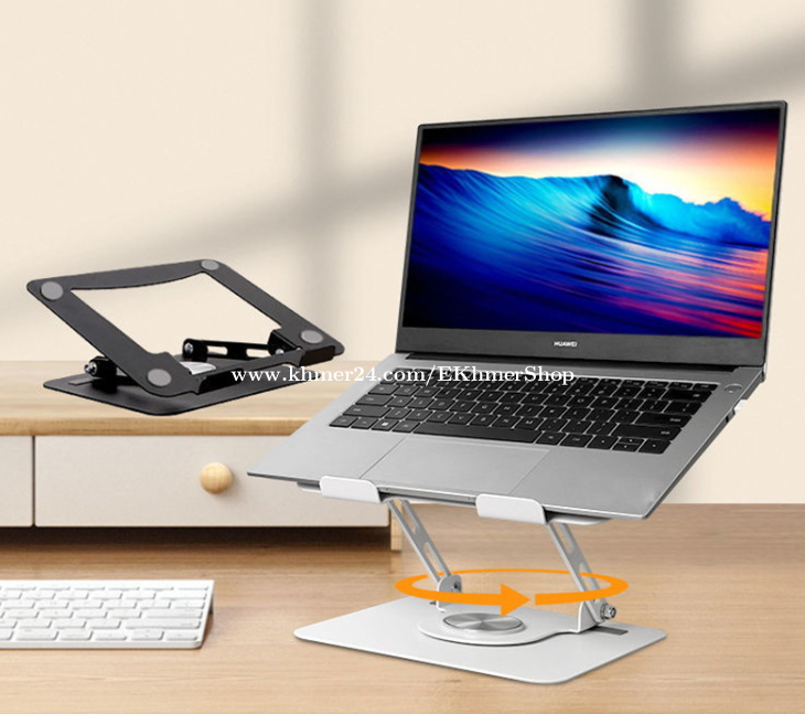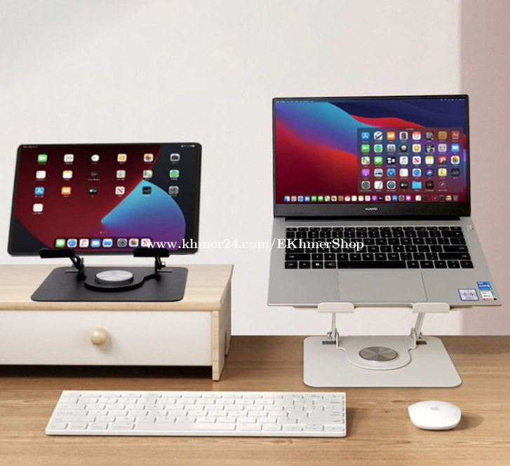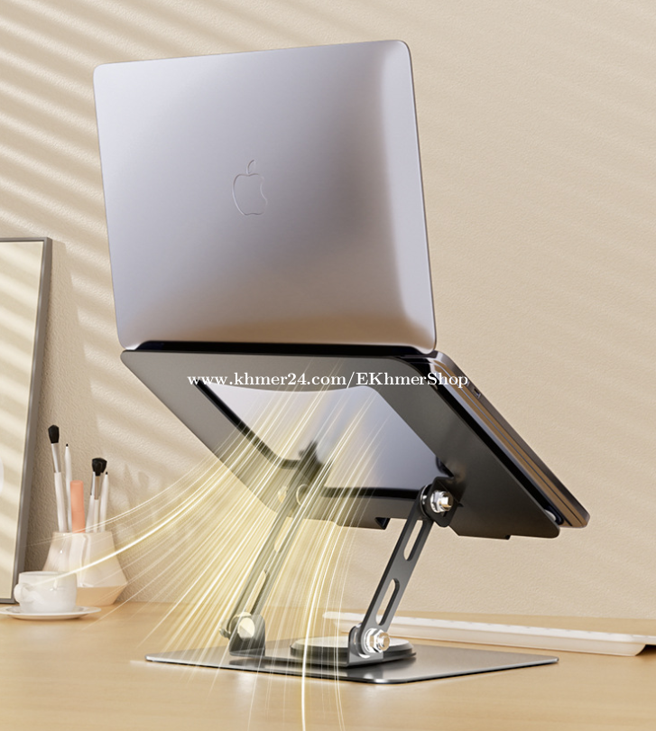 ដឹកជូនជិតឮពីទីតាំងខ្ញុំ នឹង អាចផ្ញើតាមខេត្ត Free delivery near near from my location call/telegram/WhatApps : 016998xxxClick To Call Location: https://maps.app.goo.gl/FXmsUYinLKz4J9HG6 Telegram: https://t.me/ekhmershop Folding Laptop Stand Tablet Desktop Lifting Heightening Cooling 360 Degree Rotating Metal Bracket