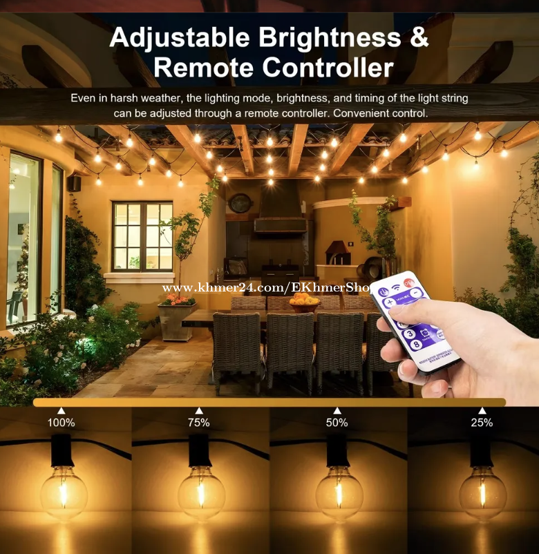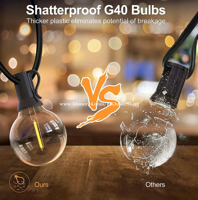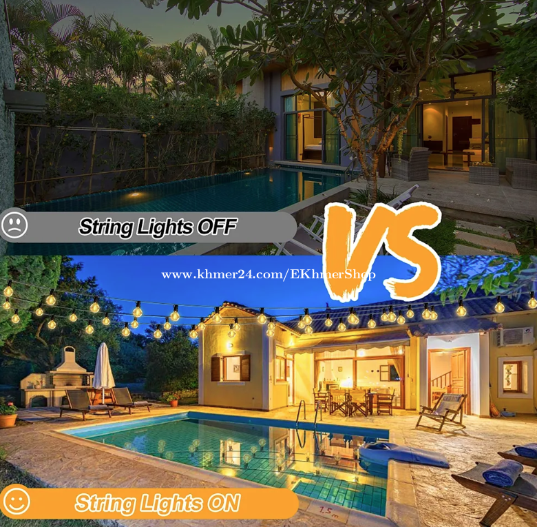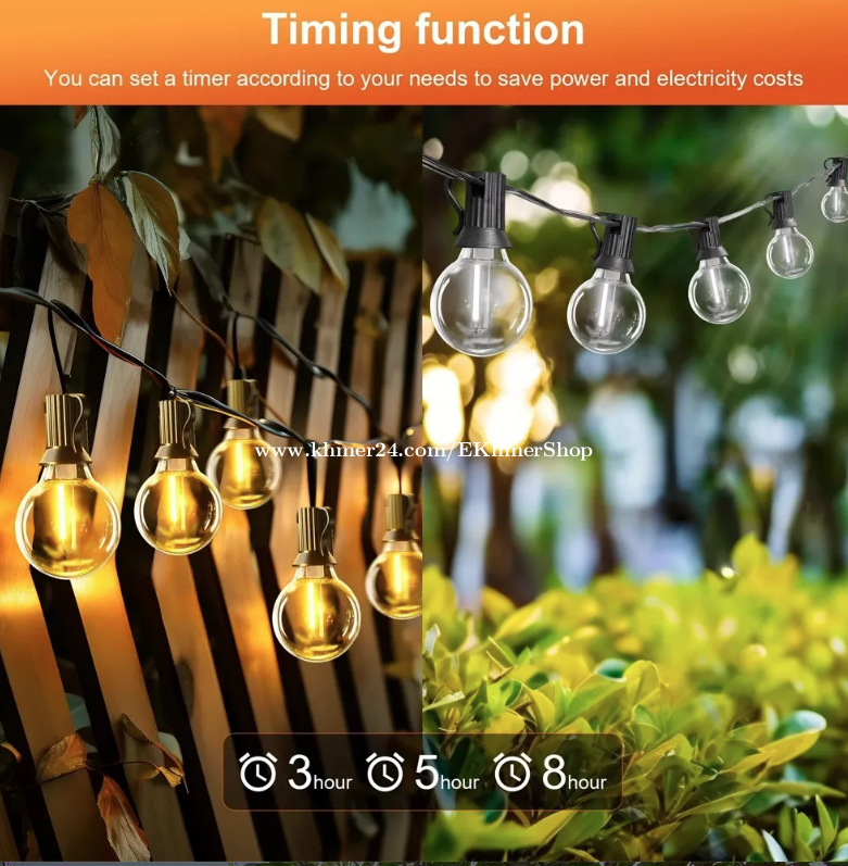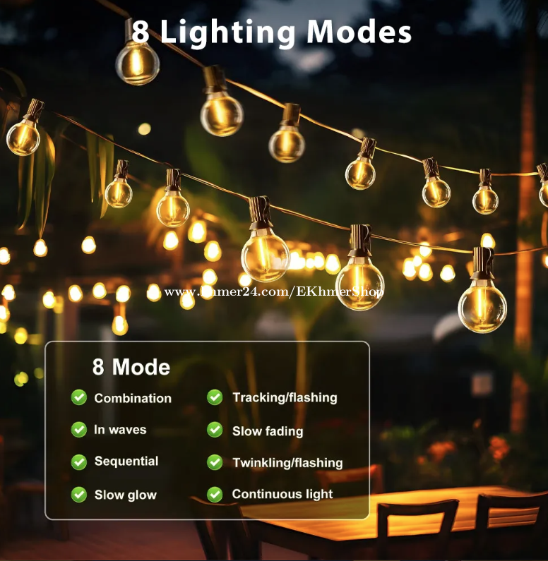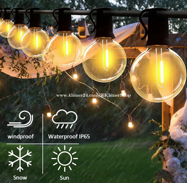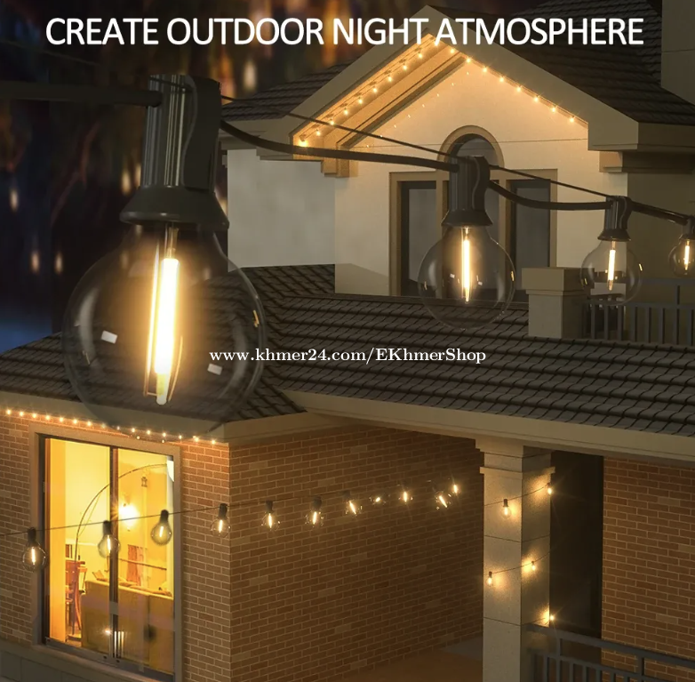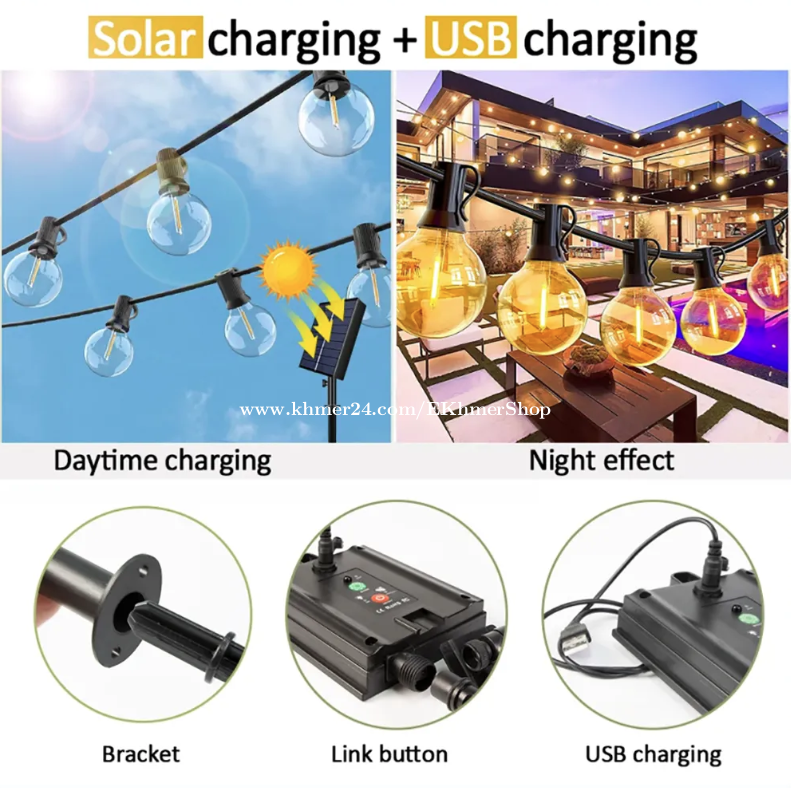 ដឹកជូនជិតឮពីទីតាំងខ្ញុំ នឹង អាចផ្ញើតាមខេត្ត Free delivery near near from my location call/telegram/WhatApps : 016998xxxClick To Call Location: https://maps.app.goo.gl/Hf9vKDmsjCVi6ZtE8 Telegram: https://t.me/ekhmershop 2026 Solar G40 LED Bulb String Lights with Remote