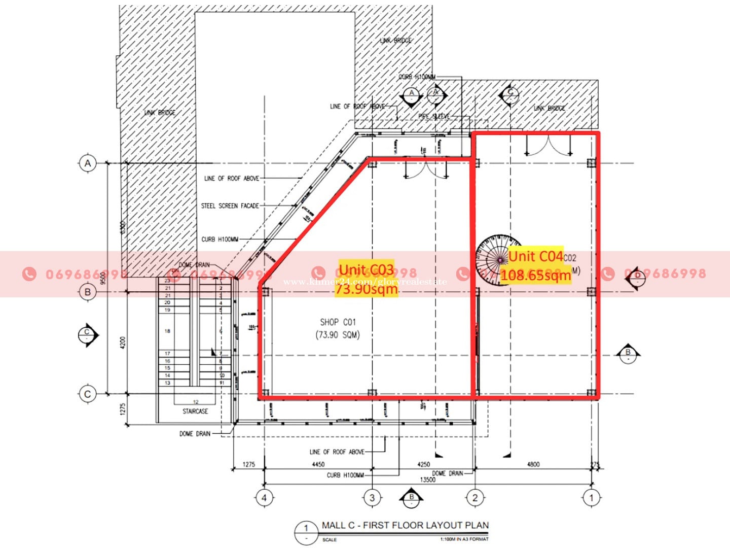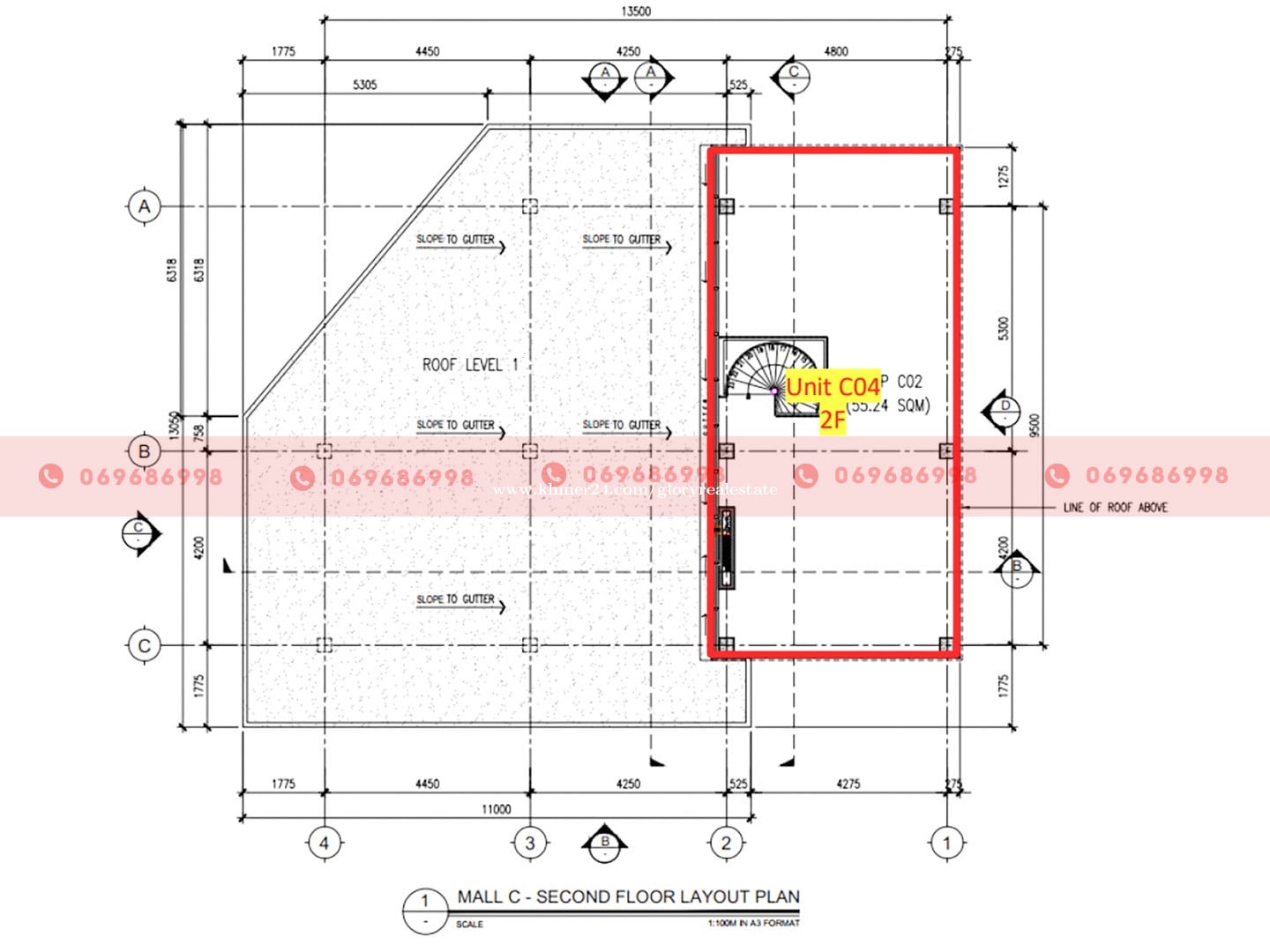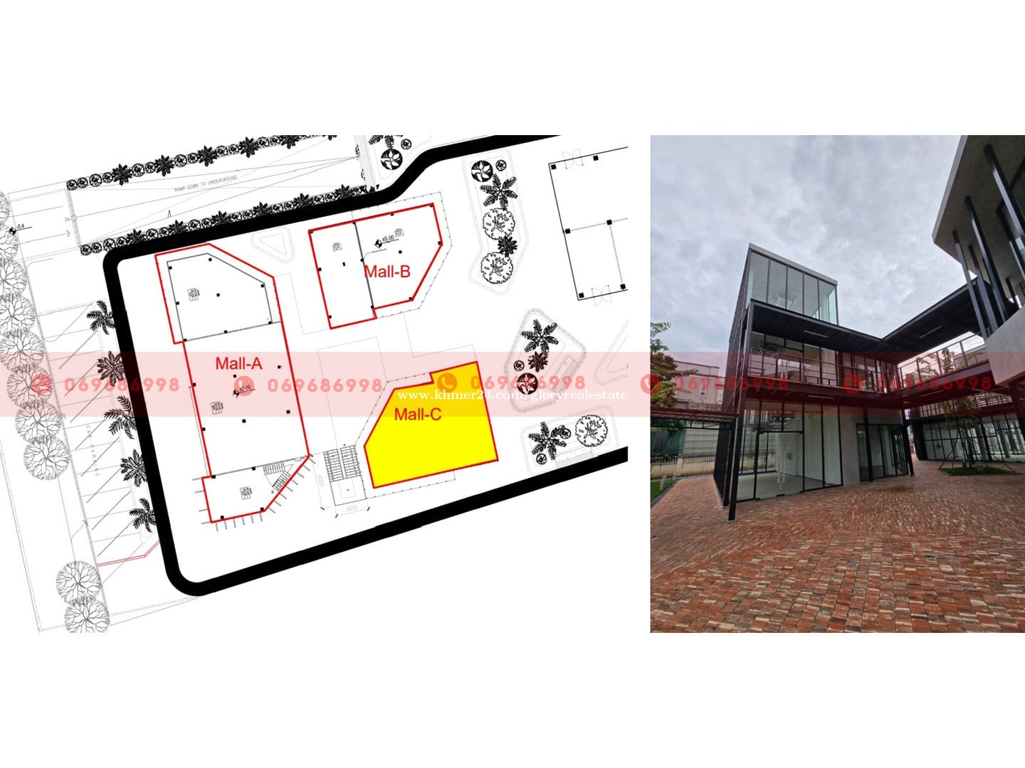 This retail or office building (Building C) is now available for lease along a major road in the Russei Keo area of Phnom Penh. The property can be leased as a whole or by individual sections, offering flexibility for retail brands and office users seeking a professional, well-managed location. Property Overview - Total floor area: 280 sqm - Building height: 3 floors - Outdoor space: Ample common land with landscaped greenery - Parking: Frontage parking spaces available Available Unit Sizes (Sectional Leasing) - B01: 43.81 sqm - B02: 53.41 sqm - B03: 73.90 sqm - B04: 108.65 sqm Handover Conditions - External glass demarcation partitions and glass entrance doors - Recessed lighting with open ceiling - Installed air-conditioning units - Firefighting sprinkler system and smoke detectors - Bare flooring - Tenants are responsible for interior renovation, fixtures, and decorations, subject to approval of the renovation plan. Services Provided - Common area cleaning and garbage disposal - 24/7 security service - Backup power supply - Common area electricity and water - Maintenance of common areas (washrooms, parking, garden, walkways) - Air-conditioning maintenance every 4 months - Maintenance of building equipment (generator, firefighting system, etc.) Fees & Utilities - Management fee: USD 3/sqm (subject to 10% VAT) - Electricity: USD 0.30/kWh - Water: USD 0.80/mยณ (Included in the management fee if leased as an office) Suitable For - Retail businesses - Corporate or representative offices This building offers excellent visibility, flexible leasing options, and comprehensive building services, making it an ideal choice for businesses in the Russei Keo area. ๐Ÿ‘‰ Property ID: GP-61943 For more information or to schedule a viewing, please donโ€™t hesitate to contact us. ๐Ÿ“ฒ Call: 069686xxxClick To Call/099688xxxClick To Call ๐Ÿ’ฌ Telegram: t.me/glorycam ๐Ÿ’ฌ WhatsApp: https://wa.me/+85569686998 ๐Ÿ’ฌ WeChat: gloryrealestate ๐Ÿ“ง Email: con****@glorycambodia.comClick To Sent Email