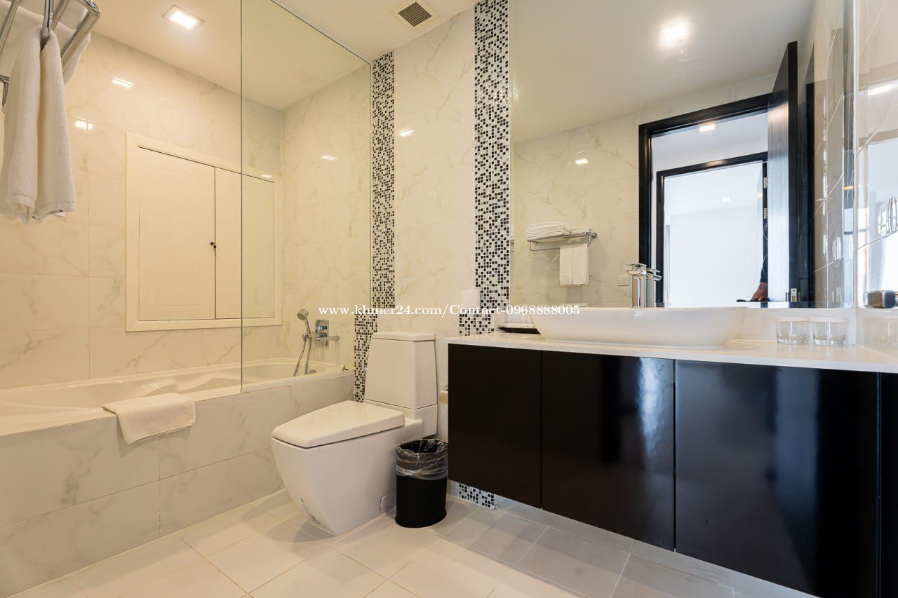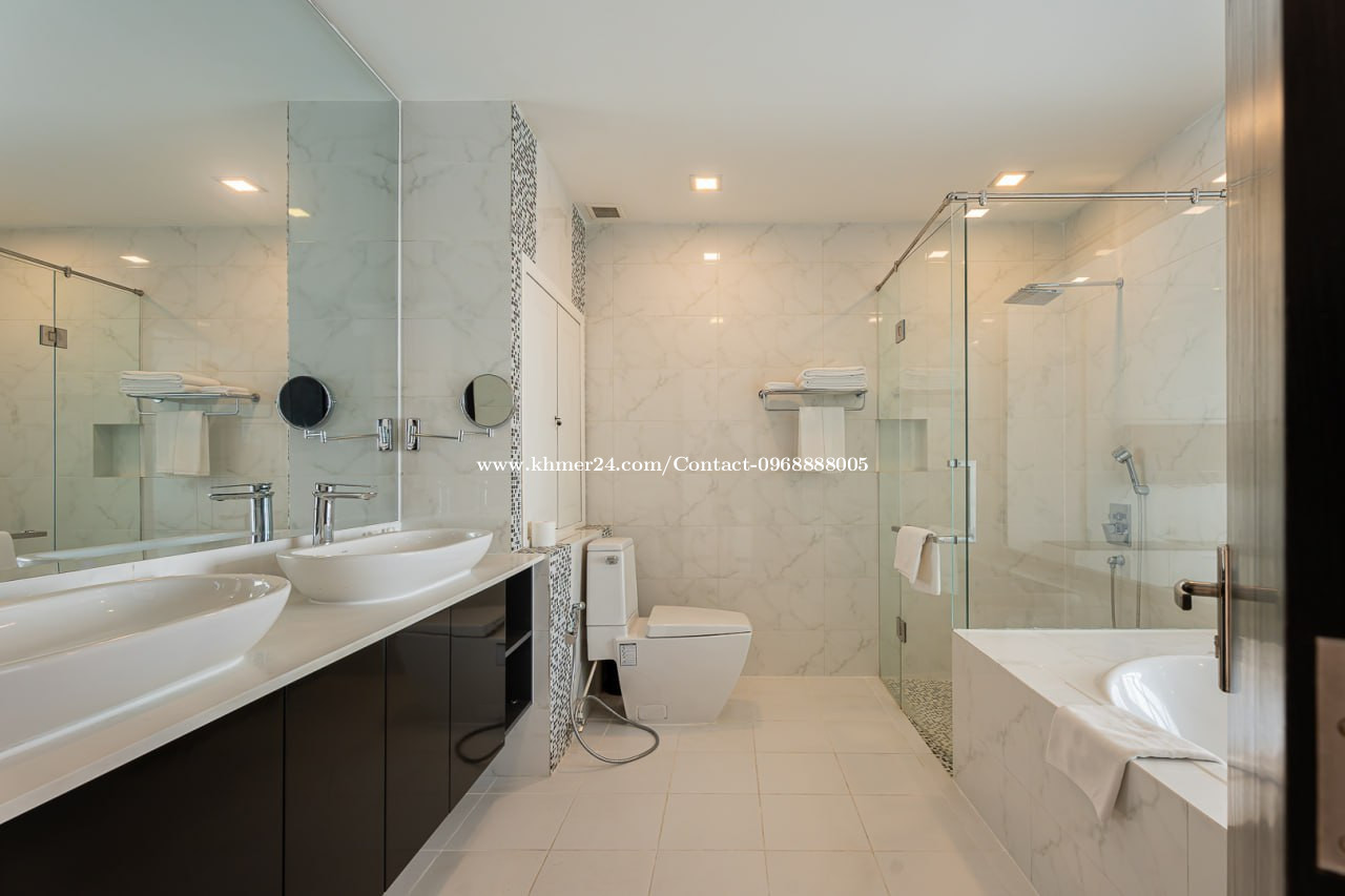 2bedrooms- 2bathtooms with bathtub - Size: 150sqm - Available Floor: 03rd floor - Monthly Price $ 2,500/month ๐ Contact / แแแแถแแแแแแ: +8559688888005 Click Here Telegram: https://t.me/Brother0968888005 *Service Included: โข Cable TV (1 in living room and 1 in master bedroom) โข Fully equipped kitchen โข Iron/ironing board โข Safe deposit box โข Washing machine โข Dining table with chairs โข Management Fee โข One in-house parking โข Daily newspaper โ available at the lobby โข Access to fitness equipment with modern and professional gym, pool, steam and sauna โข Access to kid playground. โข WIFI internet โข Cleaning and change linens 2 times per week โข Water supply โข Lift maintenance โข Building maintenance * Service Excluded: โข Telephone IDD โข Electricity usage ($0.25 per kilowatt) โข Rooftop sky bar