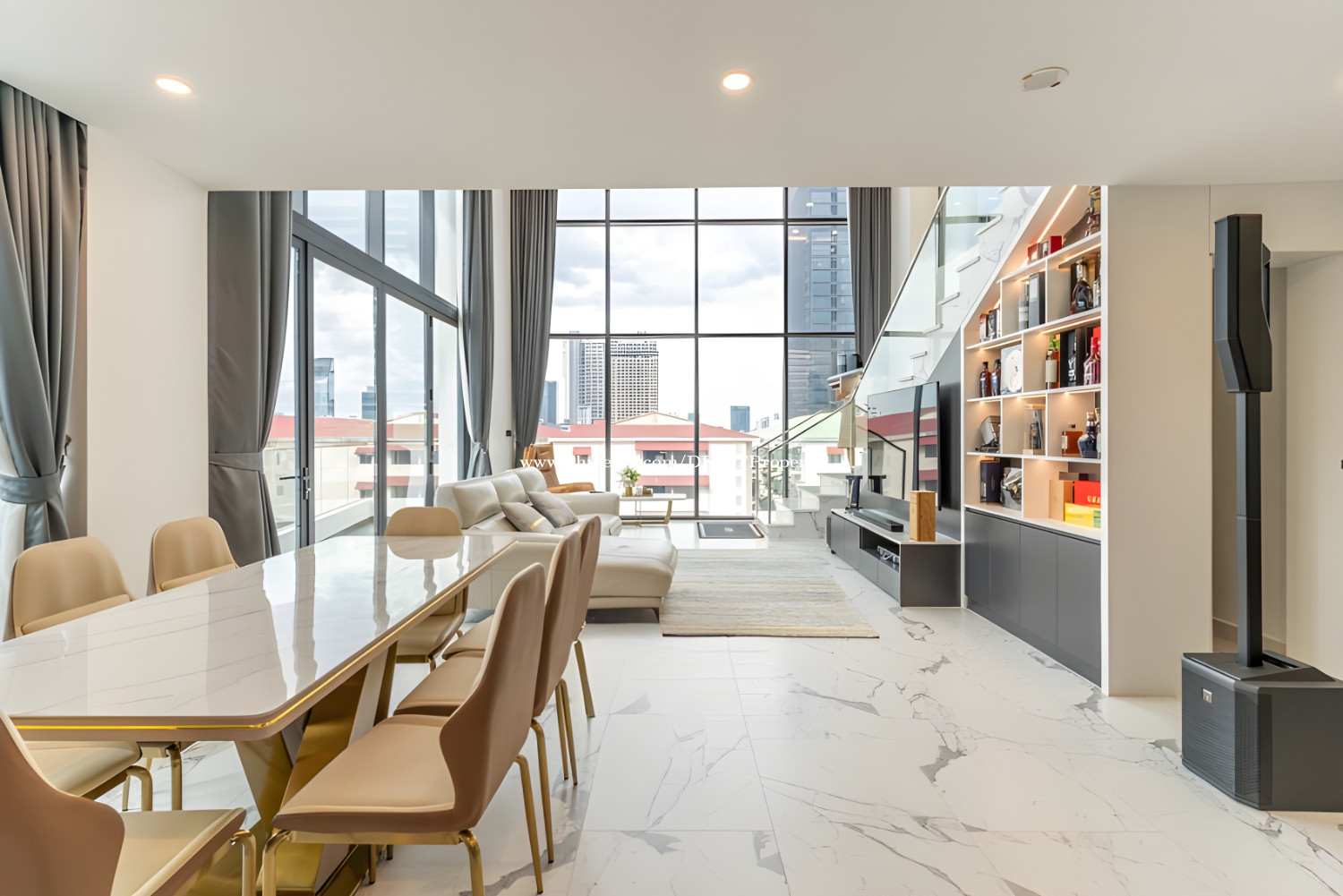 - Fully Furnished - Corner Unit - Duplex Layout - Term: 1 Year w/ 1-Month Deposit - 2BR, 3BTH - Designated Office Room - Size: 215 Sqm. - Cozy Living Area - 4-Seater Dining Set - Straight/One-Wall Kitchen - Big Balcony - Situated Floor: 9F - Amenities: Swimming Pool, Gym, Lift/Elevator - Inclusions: Management Fee, WiFi, Housekeeping (2x/week), Parking (Motor) - Car Parking: $50/month - Electricity: $0.25/KWH - Water: $0.30/m3 - Backup Generator - No Pets Allowed