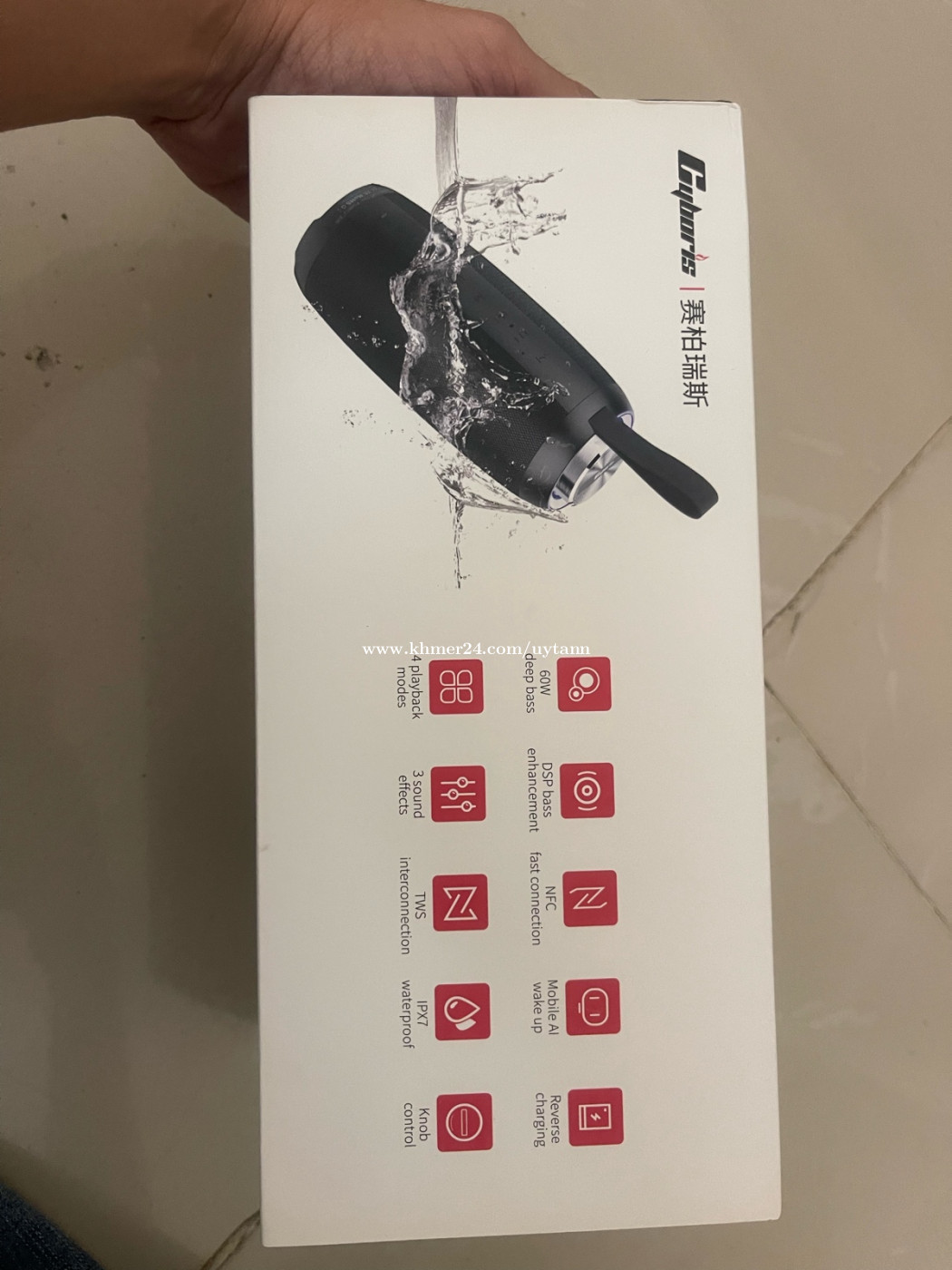 Speakers cyboris 60w ជំនាន់ថ្មី 👉 សំលេងបាស់ធ្ងន់មិនបែក 👉 មានEQ ប្ដូរសំលេងបាន3កំរិត 👉 មិនខ្លាចទឹក 👉 bluetooth ចាប់បានលេីសពី15m 👉 ថ្មីធំ 6600mah អាចចាក់បានពី4ទៅ8ម៉ោង 👉 support fast charge 👉 អាចភ្ជាប់speaker 2 ចូលគ្នាបាន 👉 រូបរាងស្អាត ទាន់សម័យ ប៊ូតុងថែមថយសំលេងឡូយ 👉 Play / Pause / mobile AI wake up / Answer call ទំនាក់ទំនងទិញ 0963696xxxClick To Call