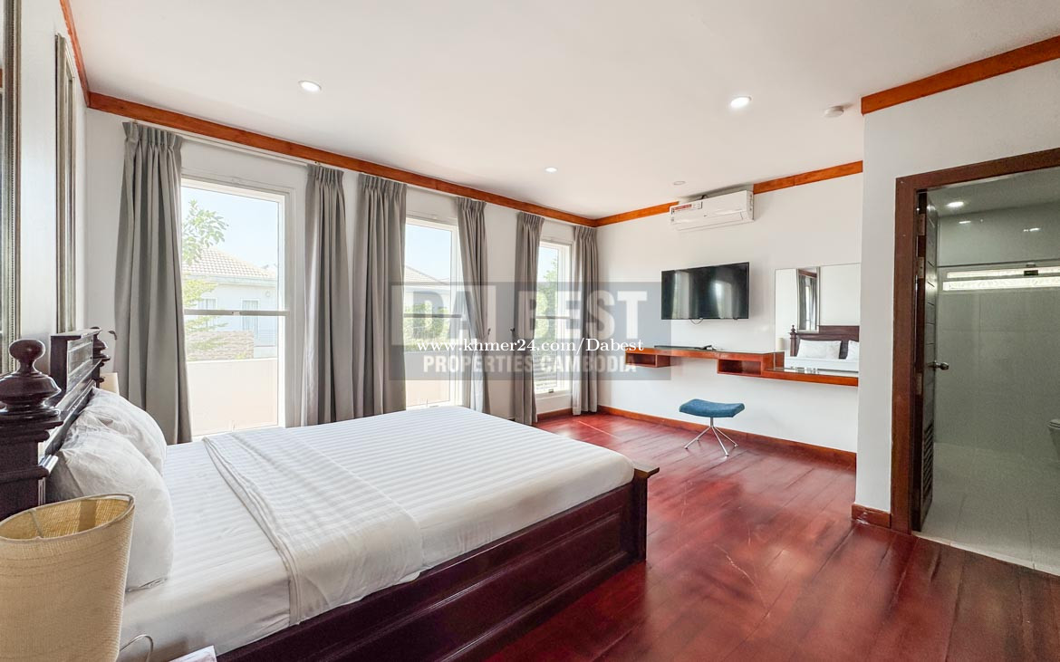 • Property ID: SRV1185 • Contact DABEST: Cellcard089780xxxClick To Call (wechat, whatsapp, Line, Telegram) or mailto: inf*@dabest-properties.comClick To Sent Email MORE DETAILS: • 5 Bedrooms with air conditioner • 6 Bathrooms • Land size: 10m x 28.5m • Fully-furnished • Living Room and Kitchen • Swimming Pool • Parking and Garden • Located in Sangkat Svay Dangkum