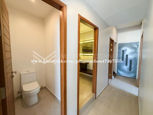 This renovated three-bedroom house for rent in Phnom Penh offers a calm residential setting in Daun Penh, with approximately 160 sqm arranged for comfortable, practical living. The layout is designed to feel open and livable rather than overly formal—ideal for long-term residents who want space, privacy, and an easy daily flow. Mornings naturally extend onto the outdoor terrace, a simple luxury for fresh air, coffee, or quiet downtime before the city fully wakes up. Inside, the living room anchors the home for relaxed evenings and casual hosting, while the kitchen is positioned for everyday cooking and routine convenience. Three bedrooms provide flexibility for family living, guests, or a dedicated workspace, supported by three bathrooms that keep household rhythms smooth and efficient.