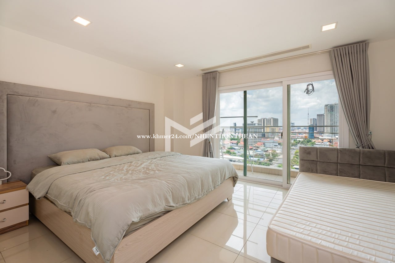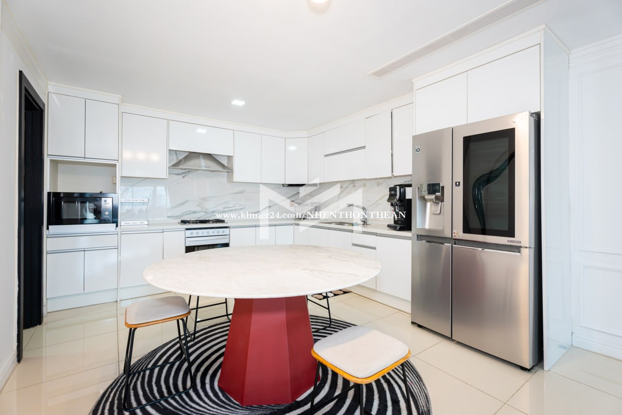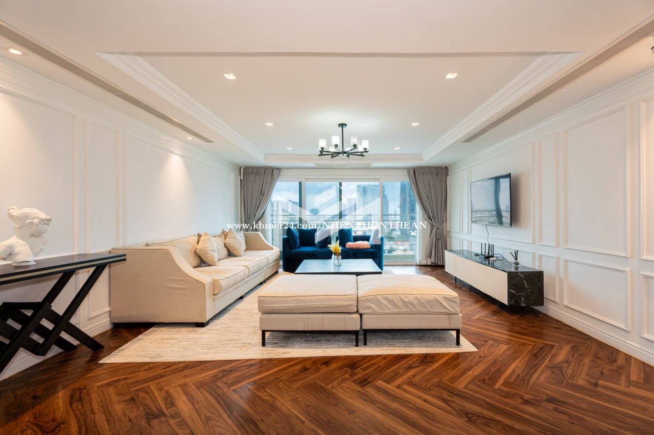 Service Apartment For Rent in Toul Kork Price: $2000 per month Size: 279m2 Key Features: ✅high-floor unit with full facilities ✅24/7 security ✅Gym, Swimming Pool, Rooftop Area It is very good for living and office safe area no flooding.