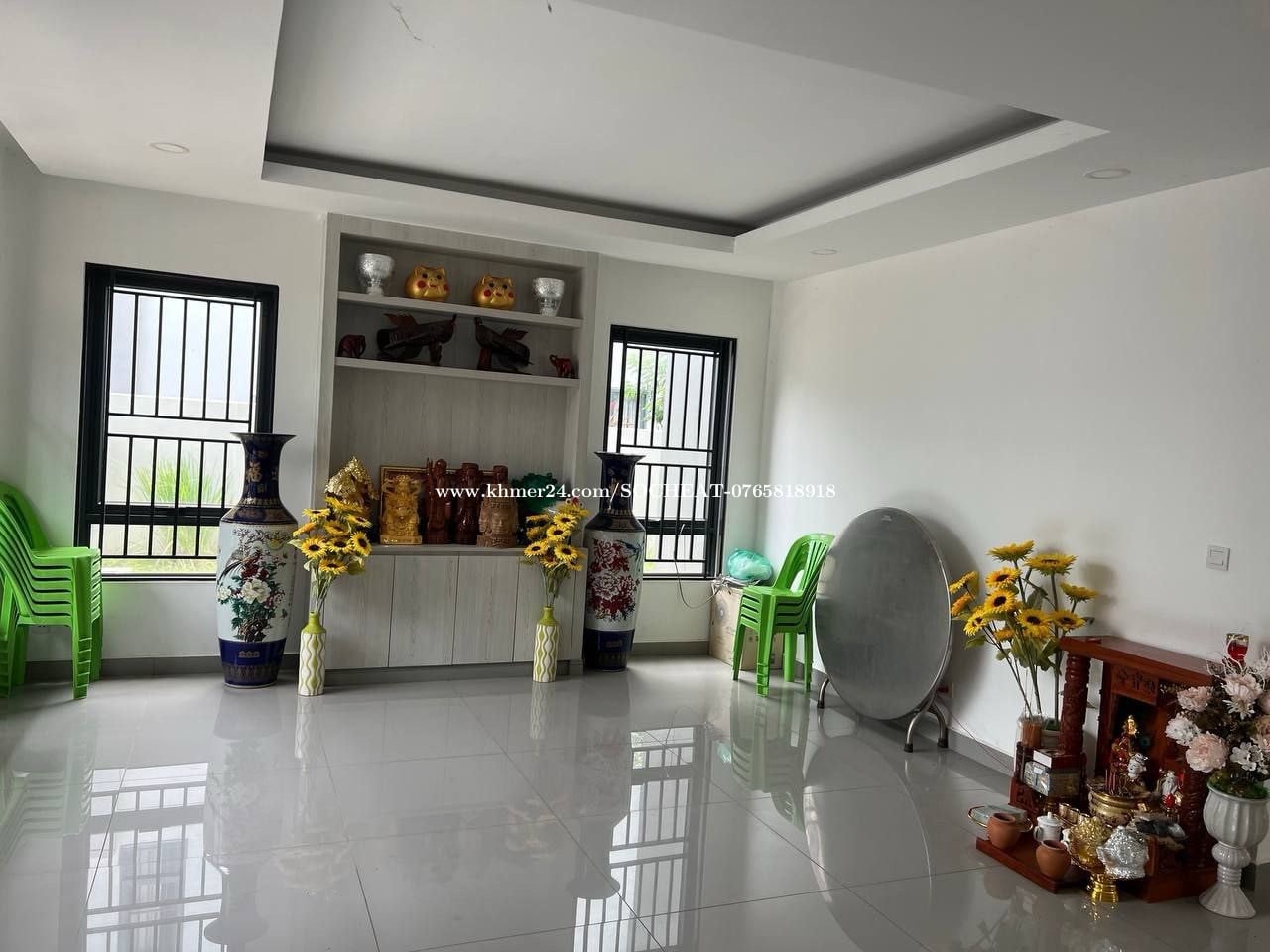 - វីឡាសម្រាប់ជួលនៅបុរី ជីប ម៉ុងលែន ៥៩៨ / Villa Queen-A for Rent at Borey Chip Mong Land, ParkLand 598 - ជួលតម្លៃ / Rent Price: $2,500 / month ចរចា - ទំហំដី / Land Size: 14m x 23m - ទំហំផ្ទះ / House Size: 9m x 12m - បន្ទប់គេង / Bedroom: 5 - បន្ទប់ទឹក / Bathroom: 6 - ផ្ទះបាយ / Kitchen: 1 - បន្ទប់ទទួលភ្ញៀវ / Living Room: 1 - សម្ភារៈពេញ/ Full Furnished -លេខទំនាក់ទំនង/Contact : 0765818xxxClick To Call