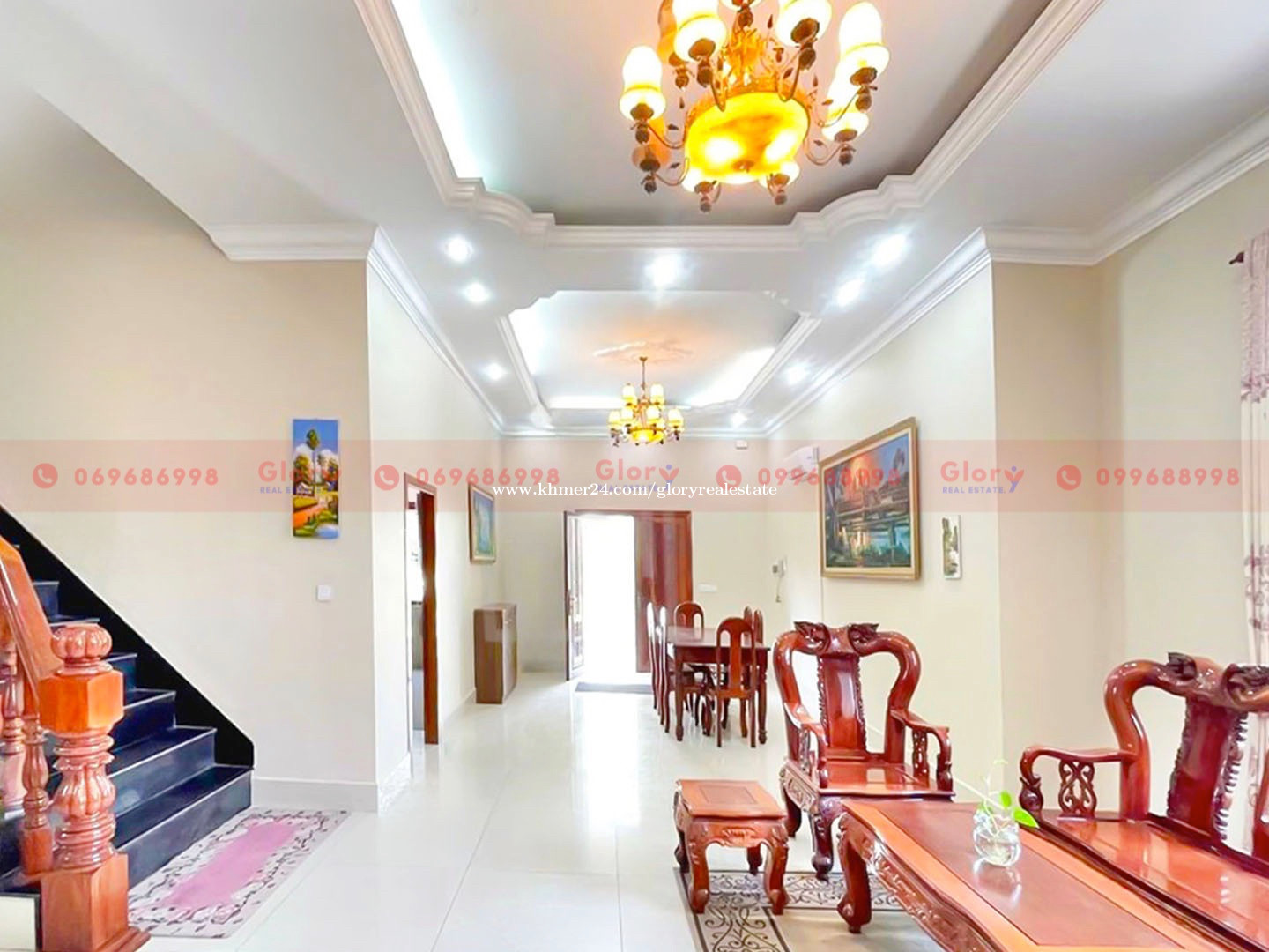 Presenting a substantial private villa for lease, set on a generous 640 sqm plot in a prime residential area of Sen Sok. This property offers a rare combination of spacious living and extensive outdoor grounds, making it ideal for a large family residence or a distinguished corporate office. Property Specifications: - Total Land Area: 640 sqm (Dimensions: 20m x 32m) - Building Area: Approx. 264 sqm over two floors (11m x 12m footprint) - Outdoor Space: Features over 500 sqm of landscaped gardens, mature trees, and a secure private yard. - Interior Layout: 5 bedrooms, 6 modern bathrooms, 2 spacious living areas, and a well-appointed kitchen. - Parking: Ample secure, off-street parking for multiple vehicles. - Condition: Offered in a semi-furnished state. This property is perfectly suited to serve as an executive family home, a diplomatic residence, or a quiet, prestigious headquarters for a company or NGO. ๐ Property ID: GP-60441 For more information or to schedule a viewing, please donโt hesitate to contact us. ๐ฒ Call: 069686xxxClick To Call/099688xxxClick To Call ๐ฌ Telegram: https://t.me/glorycam ๐ฌ WhatsApp: https://wa.me/+85569686998 ๐ฌ WeChat: gloryrealestate ๐ง Email: con****@glorycambodia.comClick To Sent Email