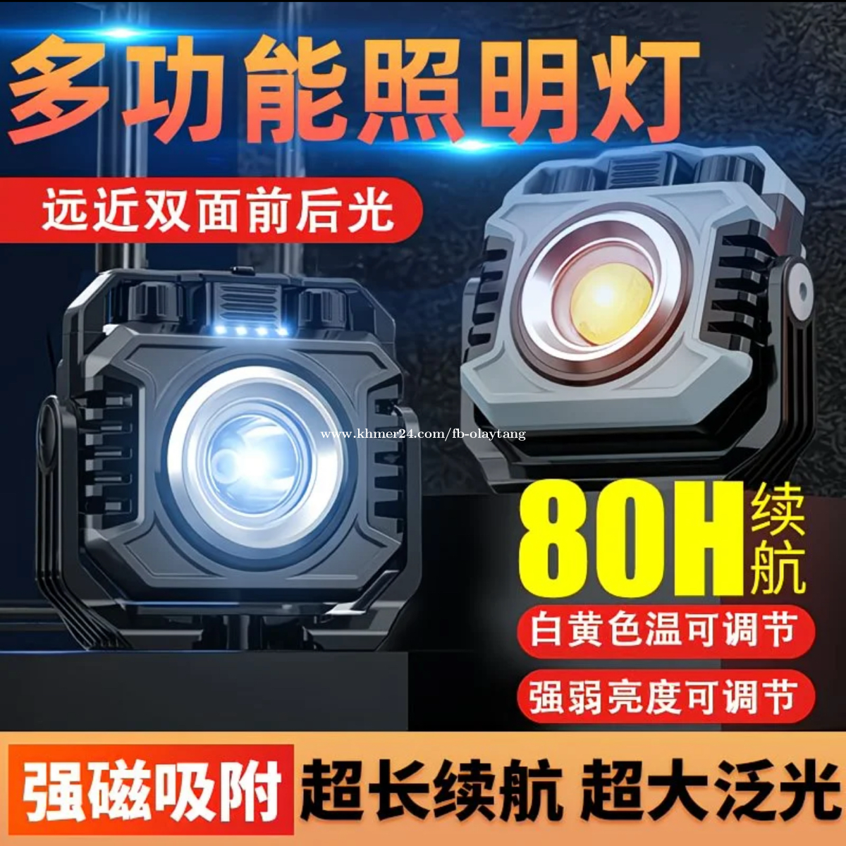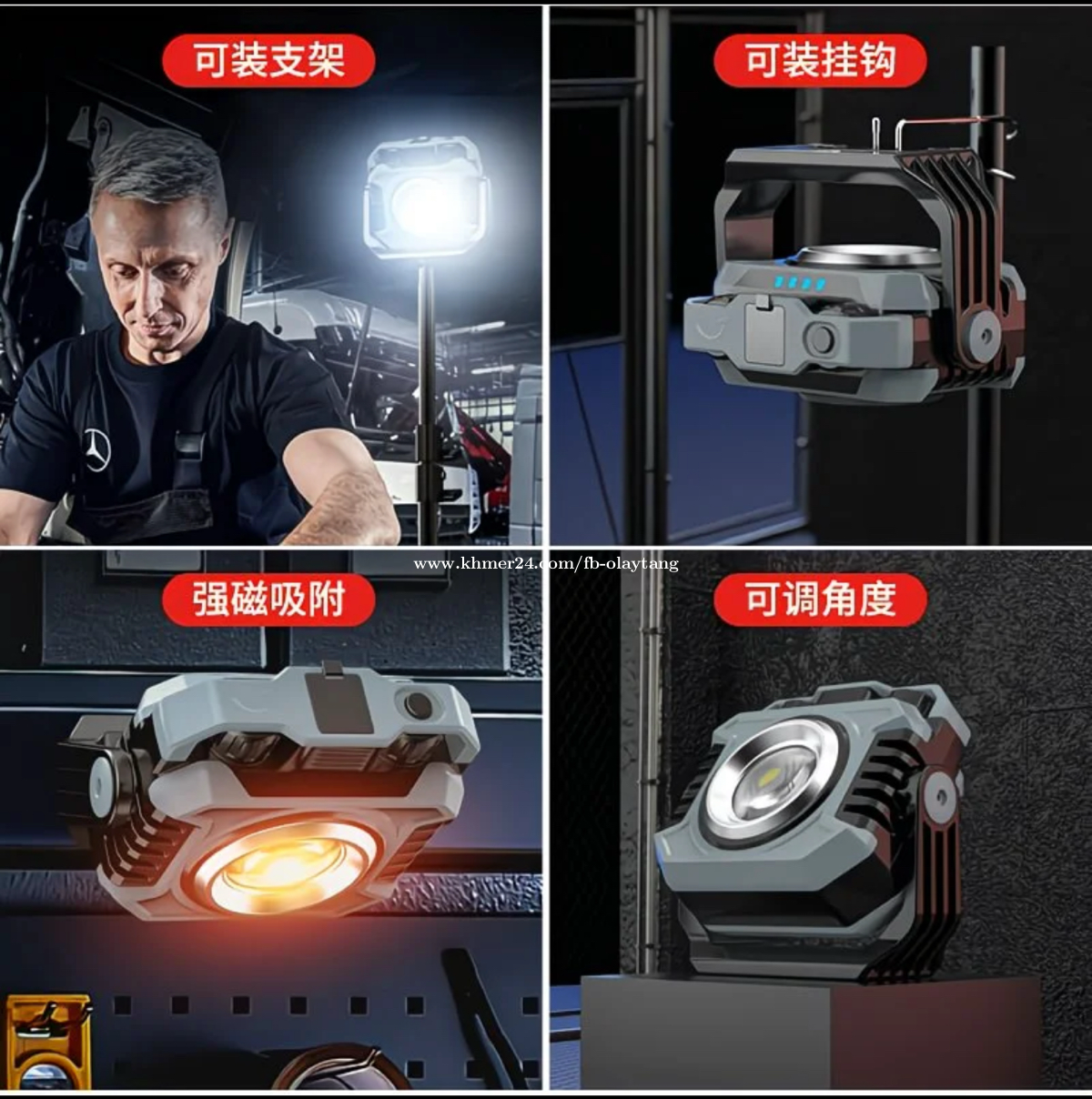 ភ្លើង LED ម៉ាញេទិក 5000mAh សម្រាប់ការងារជួសជុលរថយន្ត អាចសាកបាន ភ្លើងចល័ត ក្រៅផ្ទះប្រើប្រាស់បានយូរ។