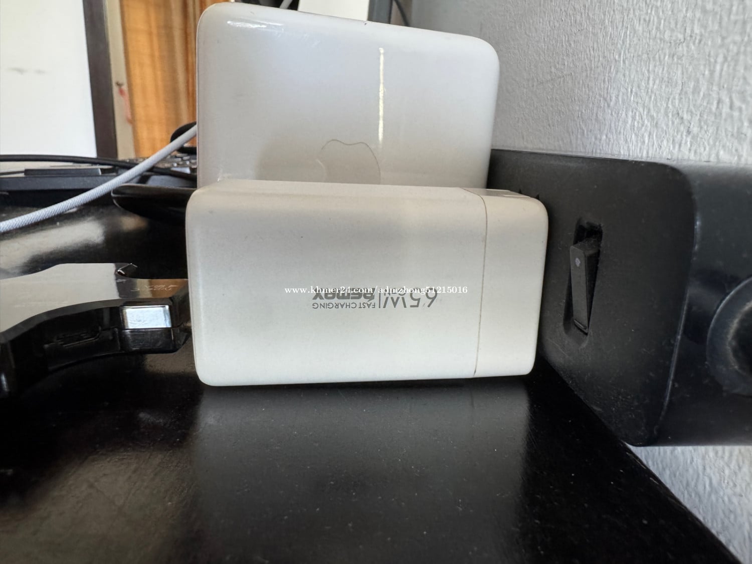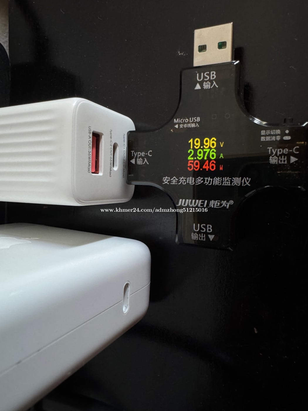 65 W 3 ports Fit for MacBook Only 1/3 size as the apple charger But same power Use the GaN technology Telegram:+85587412xxxClick To Call Free delivery in Cambodia Pay by ABA after Delivery You can try if you don’t want just return No need paid just pay the delivery fee