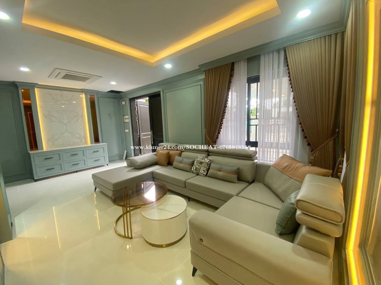 Villa Queen for Rent - In Borey Chipmong Grand #AEON2 - Bedroom : 6+1 small - Bathroom: 7 -Price: $5000 - Contract : 1 year - Deposit : 2 months - Furniture: Full - Land: 12x 23 - House : 9x12 ~ 0765818xxxClick To Call @socheat_ros