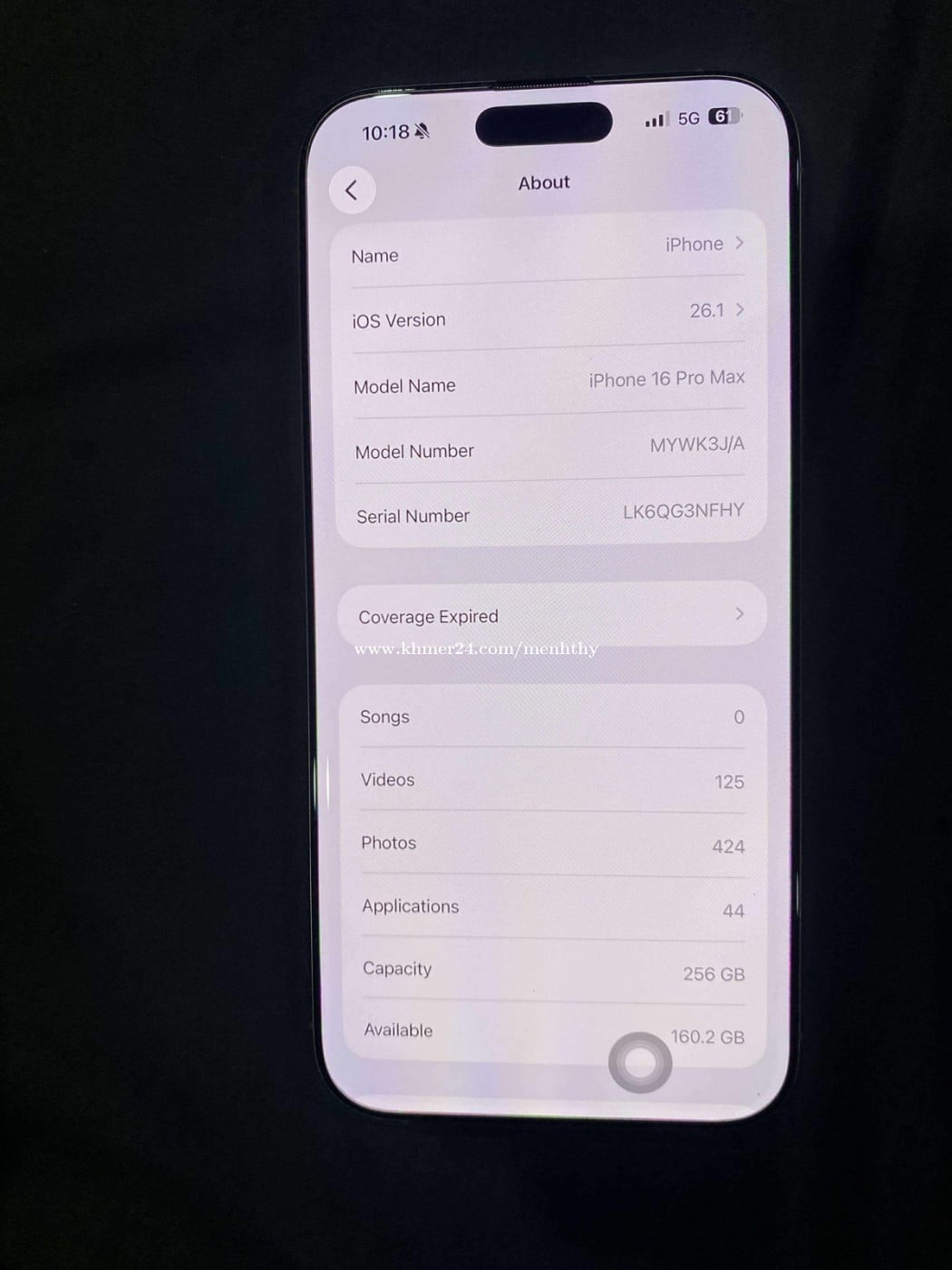 លក់ IPhone 16Promax 256GB របស់ជប៉ុន ថ្មនៅ 93% តួរនៅស្អាត 99% លក់ 800$ ប្រញាប់លុយ ទីតាំងបាត់ដំបង