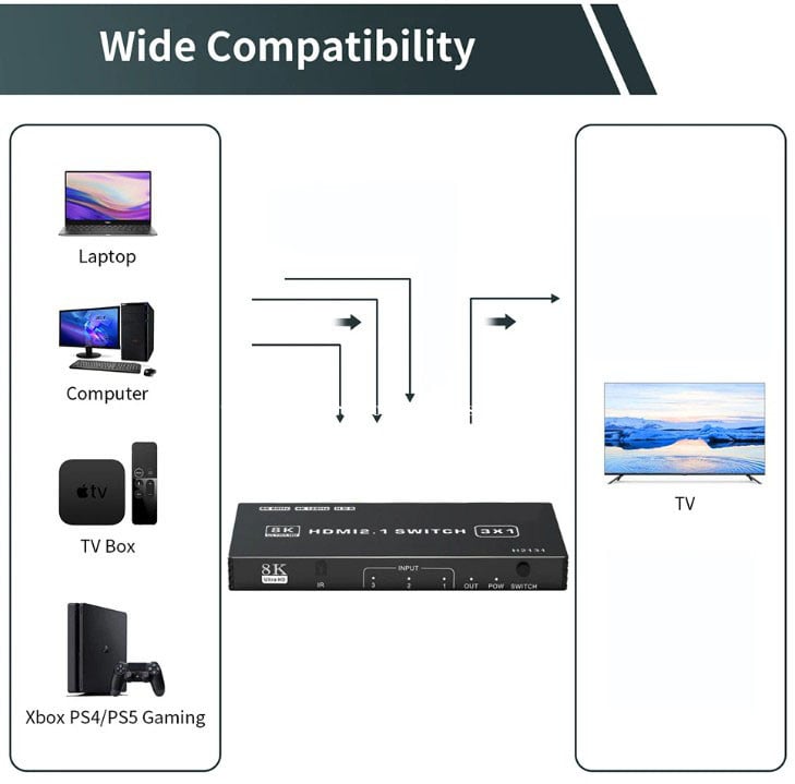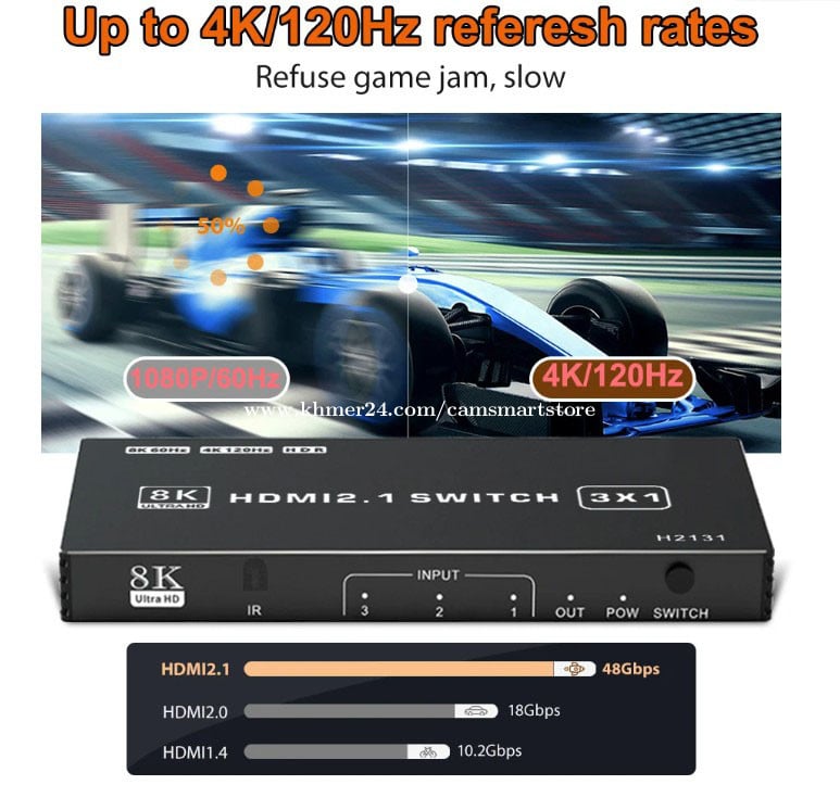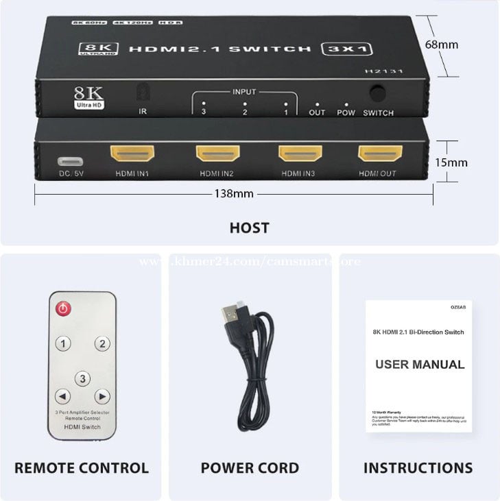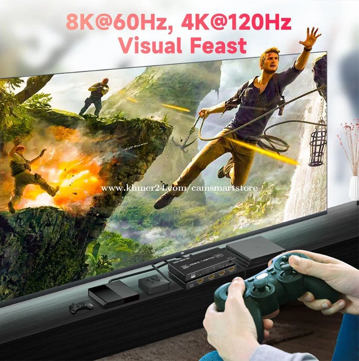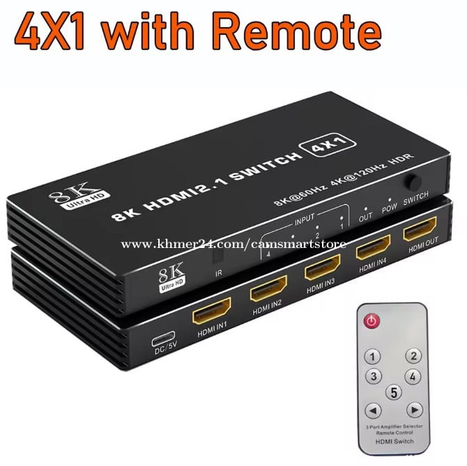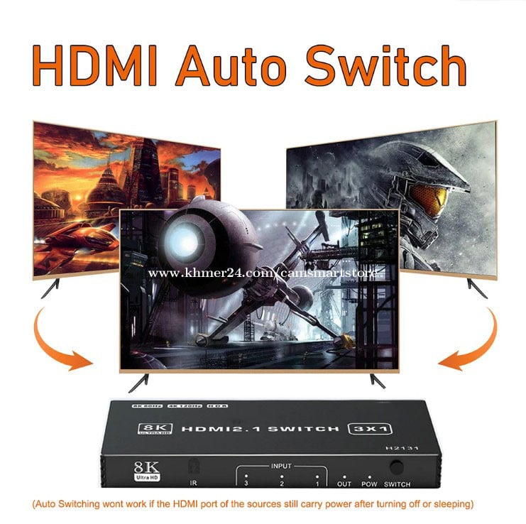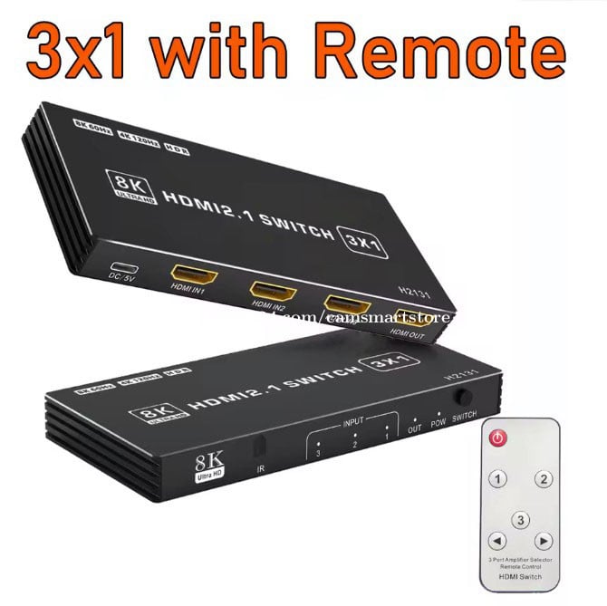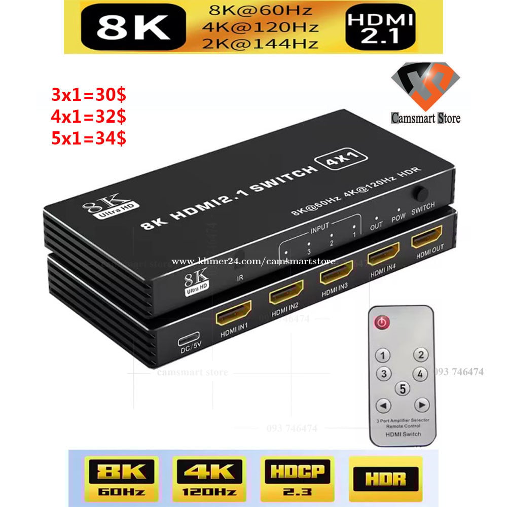 More products www.camsmartstore.com Contact Us By Telegram https://t.me/Camsmartstore Description The HD matters 8K HDMI 2.1 dual input switch is the perfect addition to new 8K TV or display! Connect more than 1 8K source devices, like a PC or next gen gaming console such as Xbox series X to the HDMI 2.1 Switch and have instant access to any of the connected and working source device! Make sure you’re getting the full gaming experience with supported HDMI 2.1 features like ALLM (auto low-latency mode), VRR (variable refresh rate) and QFT (quick frame transport). Stay ahead of the competition with full 4K @ 120Hz resolution and refresh rate support. Enjoy 8K 60Hz content with full High Dynamic Range (HDR) supported – HDR | HDR10+ | Remarks: 1)There are 4 models, pls check the features and specifications carefully before your order. 2)pls use ATC certified Ultra High speed HDMI 2.1 cable. Most sync issues like flickering, drops are caused by poor cables. HDMI Switch 4K 120Hz Enjoy full 8K UHD content the way it was meant to! These HDMI 2.1 Switch supports up to 7680 x 4320 resolutions at 60Hz as well as a full 4K (3840 x 2160) resolution @ 120Hz. Ideal for Xbox Series X, PC video card HDR | HDR10 | HDR10+ | The 8K HDMI 2.1 switch supports High Dynamic Range (HDR) video pass-through! Enjoy full content immersion from your favorite HDR10, HDR10+, HDMI 2.1 | HDCP 2.3 COMPLIANT Take advantage of HDMI 2.1 technology features including variable refresh rates, auto low-latency mode, and quick frame transport! Ideal for connecting multiple next-gen consoles or gaming PCs to your 8K TV or monitor. HDMI 2.1 Auto Switch These HDMI 2.1 Switcher supports Auto Switch for most devices, when there is new HDMI signal, it will be detected and send to Display. (note!! Not all HDMI sources support auto switching. quite some devices like DVD and PC, the HDMI port carries 5V power even when you turn off the devices And the Switch will always detect the HDMI source is working and auto switching is not available.) What is in the box: HDMI 2.1 Switch X1 USB power cable X1(power adapter is not included). Remote control (if applicable) (battery is not included) #8KHDMI2.1 #4K120HzHDMISwitch #Audiovideo #switcher #HDR10 #HDMISwitch #Switch #8KHDMISwitch #PS5 ##Xbox
