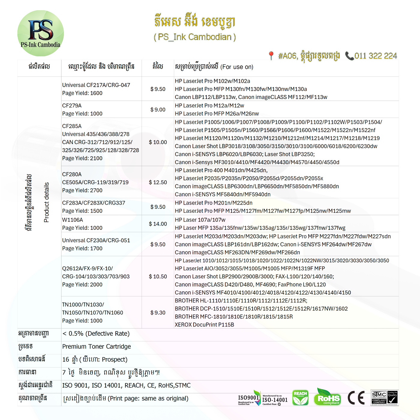 $3OFF8PS_Ink 79A 17A 80A 83A 85A 106A 12A 30A 303 TN1000 Premium Toner for HP Canon Brother Printers39m • Por Senchey, Phnom PenhNew .$9$12