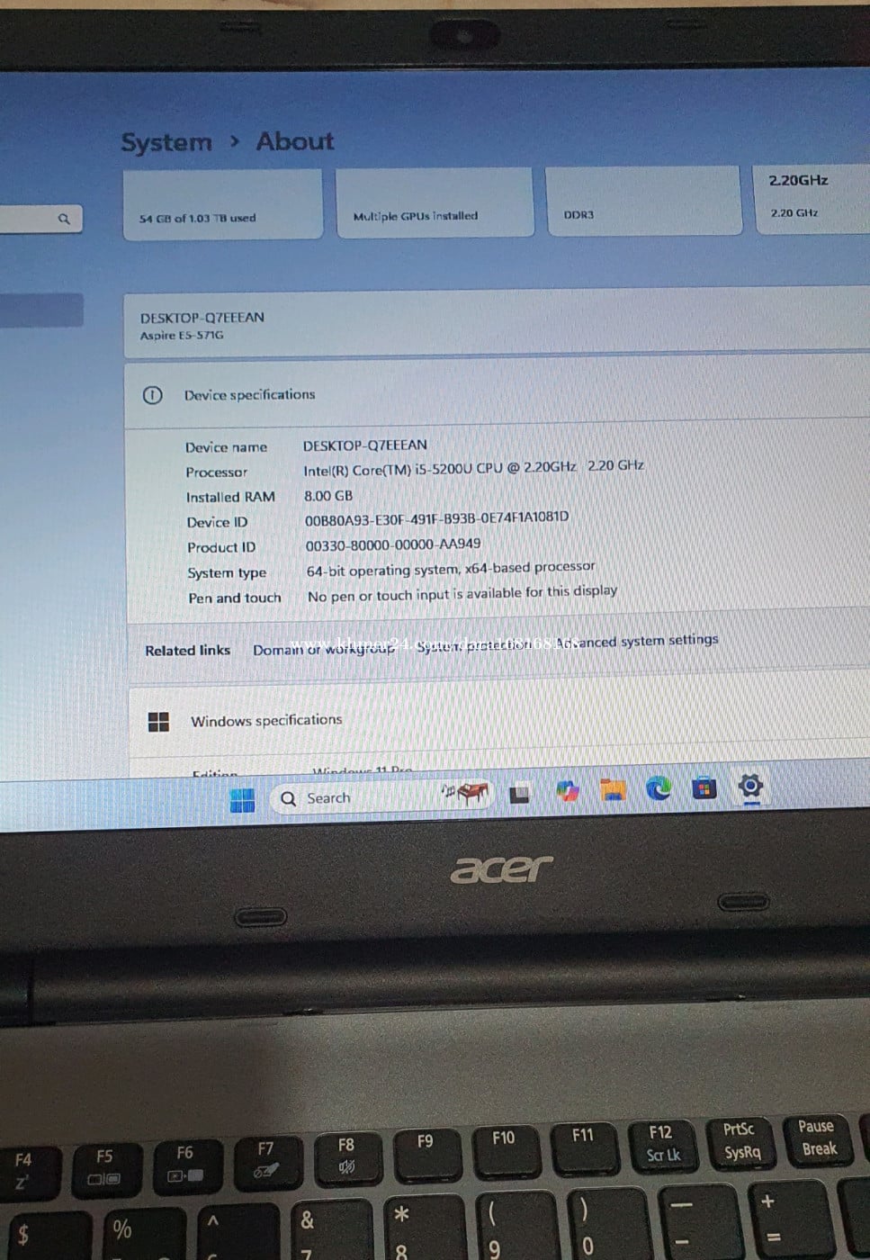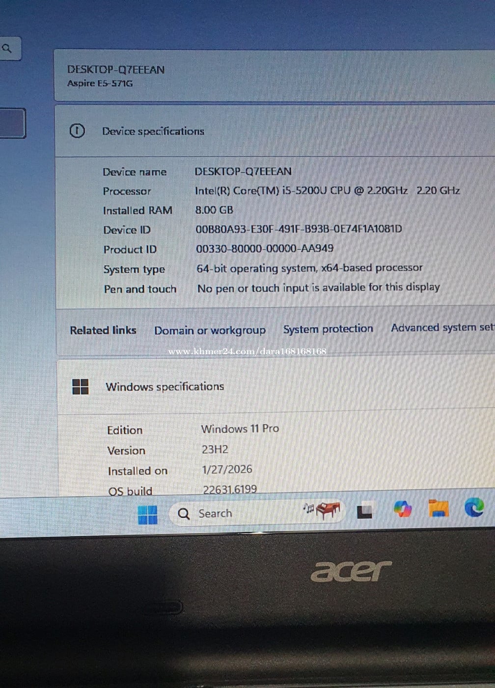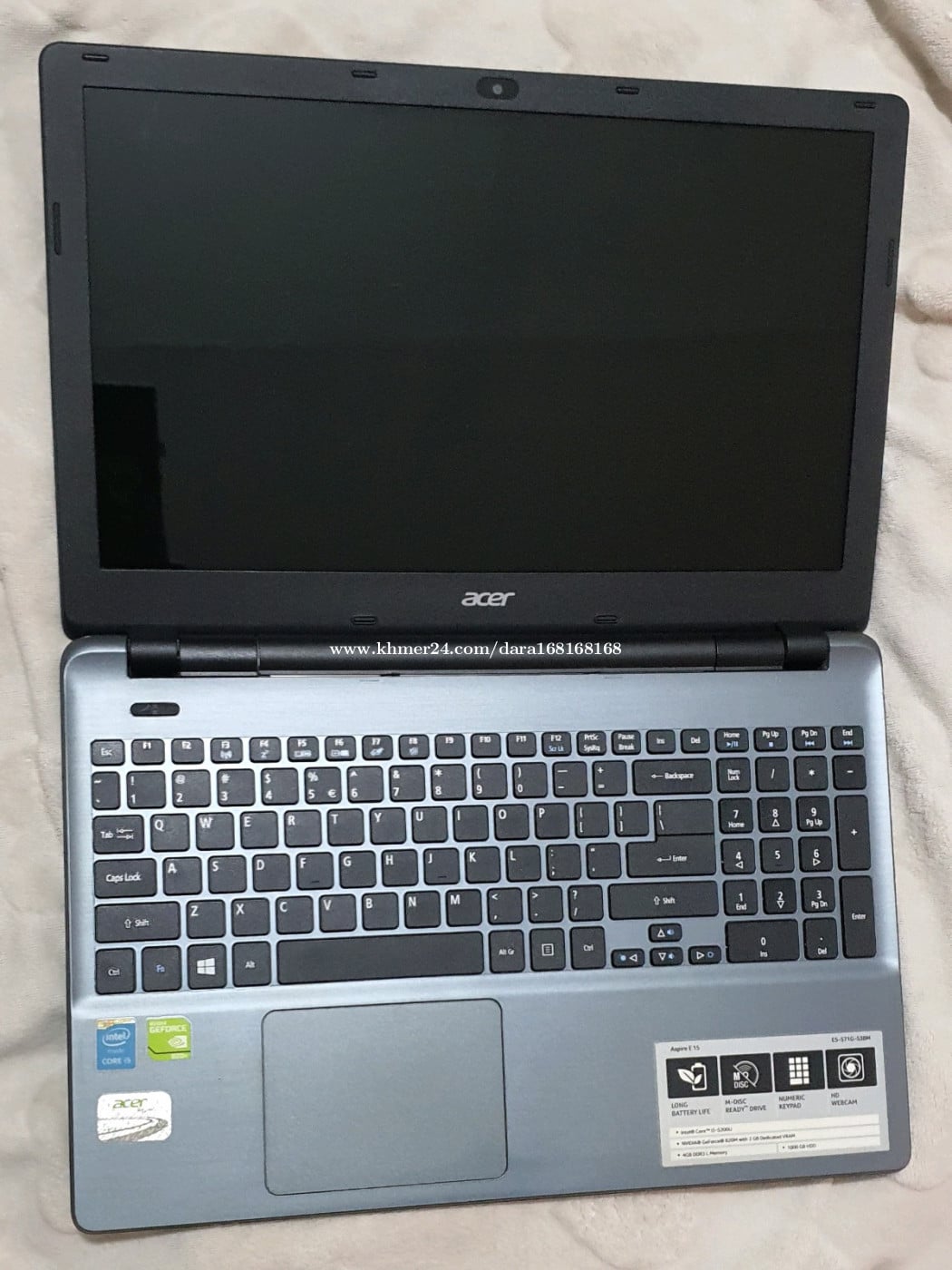 Acer aspire E15 លក់ CPU. Core i5 - 5200U @2.2GHz. ជំនាន់ទី5 Ram. 8Gb SSD. 128Gb + HHD .1T GPU. 4G. VGA .Nvidia ដាច់ .2G នៅស្អាត ដំណើរការទាំងអស់ មានបញ្ហាតែថ្ម មួយមុខគត់