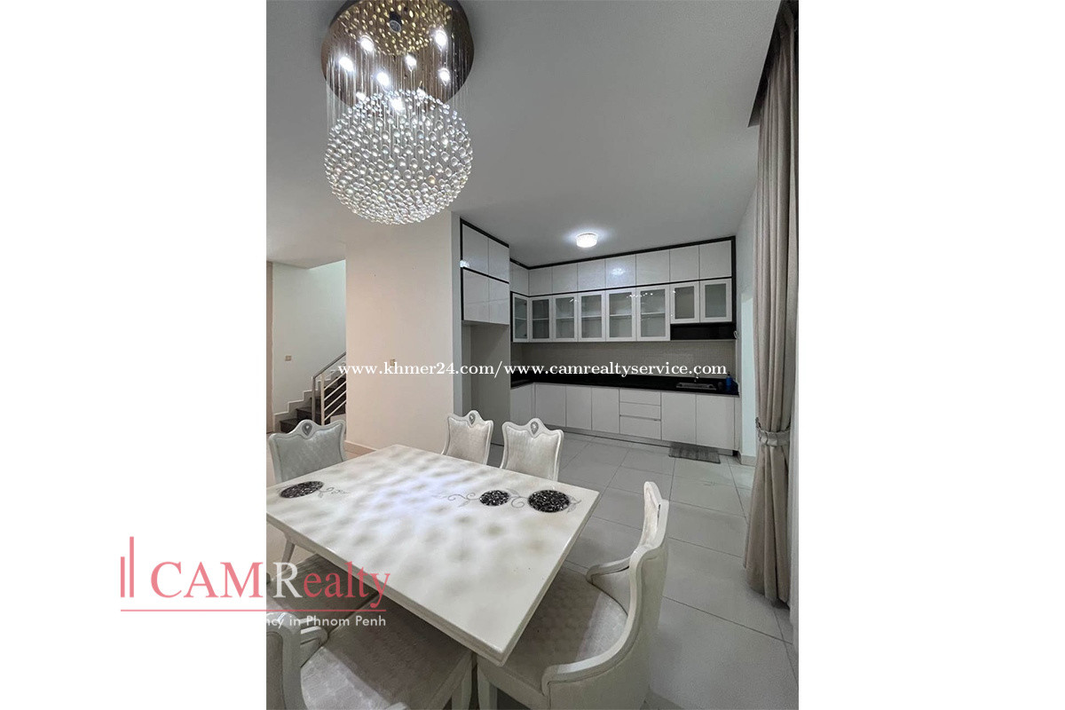 4 bedrooms twin villa in gated community for rent in AEON Mall Sen Sok City area Rental price: 1400$/month Property ID: VL3150168 - www.camrealtyservice.com Location: 10 minutes' drive from AEON Mall Sen Sok/ TK avenue Fully furnished 4 bedrooms 5 bathrooms Living room 2 kitchens (indoor & outdoor) Size: 216 sqm Car parking: 2 Rent excluded: Management fee Electricity Water usage Pool and gym membership (optional) Deposit: 3-6 months (negotiable) To check availability of this property, please drop us an email or message us now for more details. CAM Realty is a real estate company based in Phnom Penh, Cambodia. We offer rent and sale services of many kinds of properties including apartments/ serviced apartments/ villas/ office spaces for rent, as well as condominiums/ villas and houses for sale in Phnom Penh. H/P: (+855)99 556 694 (English) & (+855)11 26 88 99(日本語) E-mail: inf*@camrealtyservice.comClick To Sent Email Website: www.camrealtyservice.com