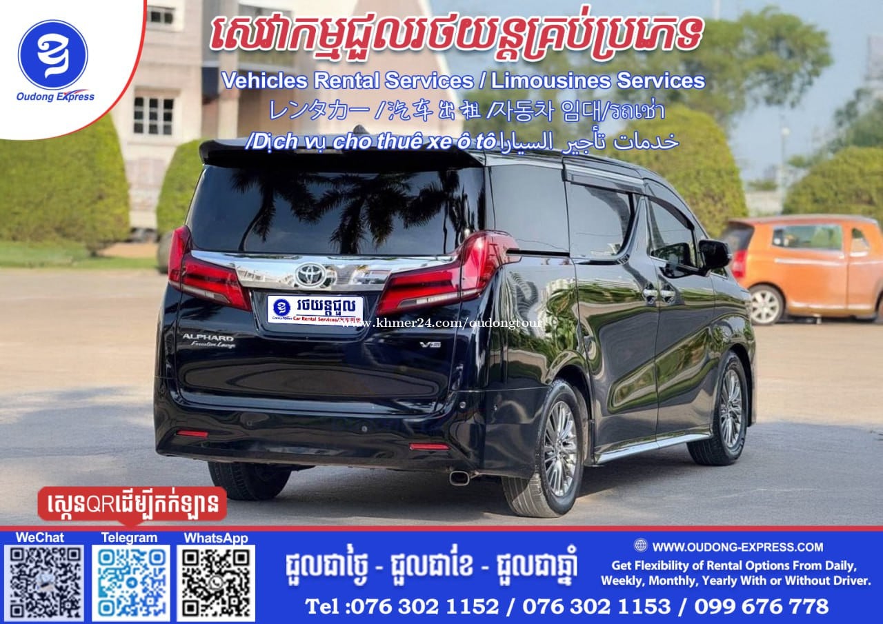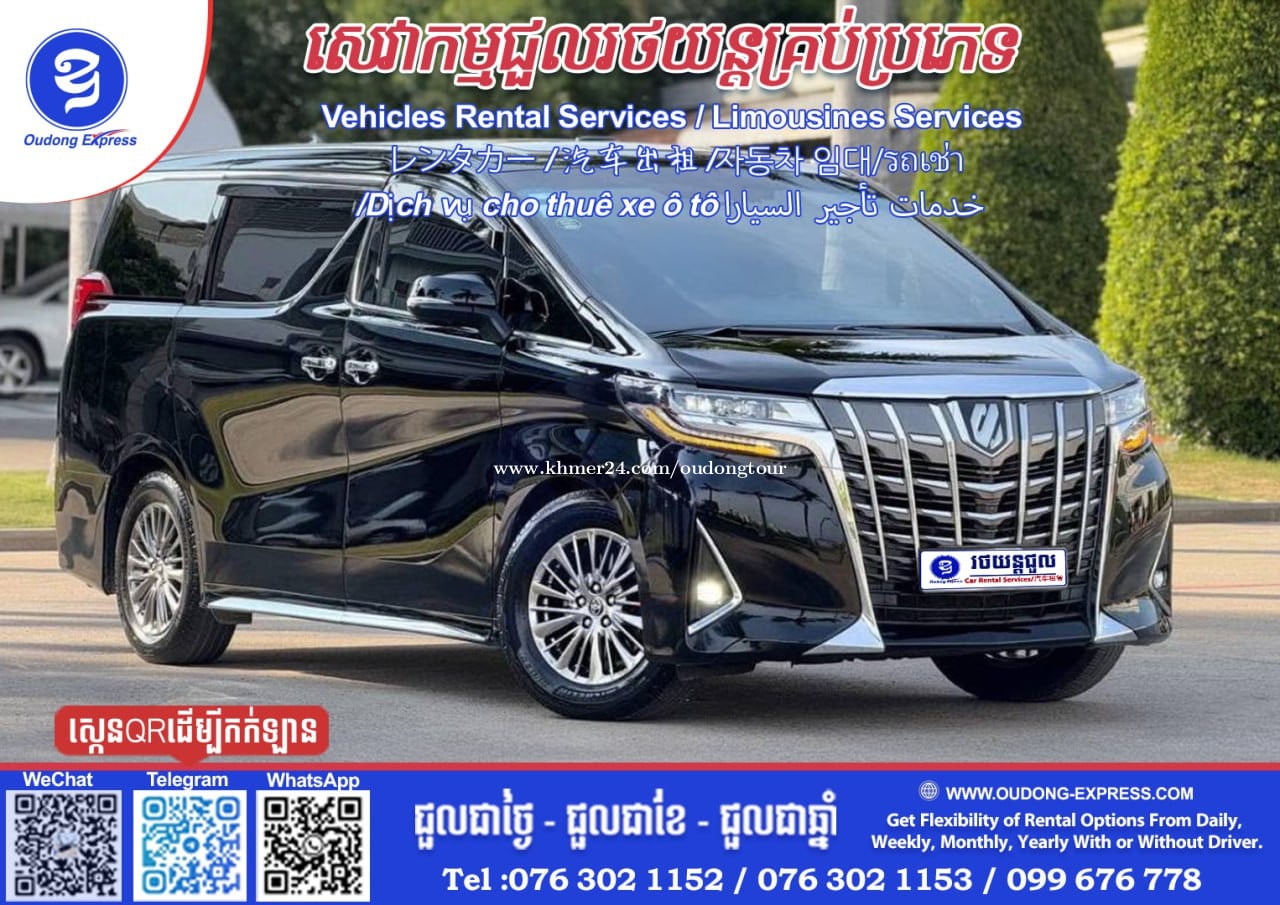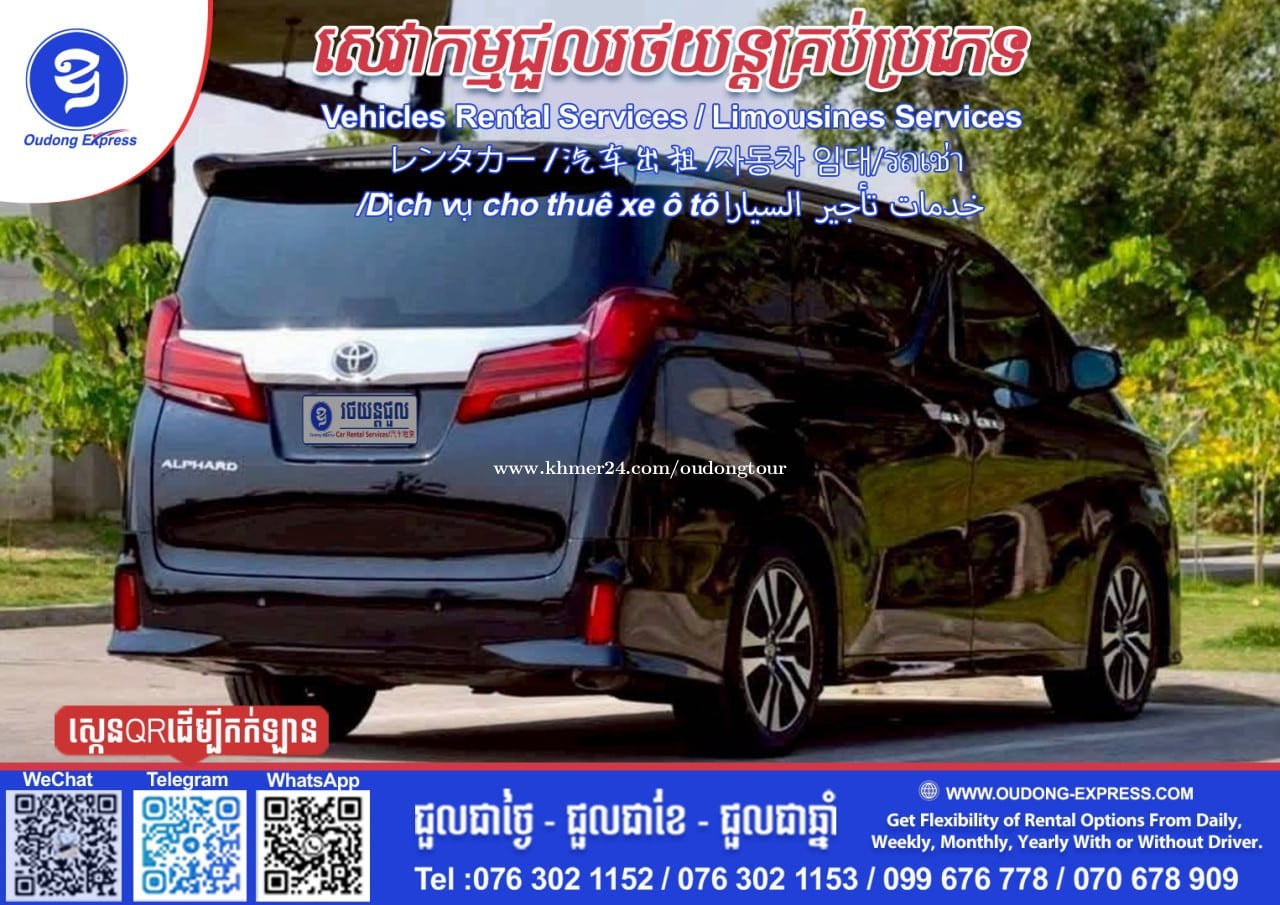 សេវាកម្មជួលរថយន្តថ្មីៗ គ្រប់ប្រភេទ #AlphardVIP Vehicles Rental Services / Limousines Services レンタカー / 汽车出租 /자동차 임대 /Dịch vụ cho thuê xe ô tô خدمات تأجير السيارا ជួលរថយន្ត-ជាថ្ងៃ -ជួលជាខែ/ឆ្នាំ ចង់បើកបរខ្លួនឯងក៏បាន & មានអ្នកបើកបរជូនក៏បានតាមតម្រូវអតិថិជន We are offer many options & flexibility of our vehicles services in Cambodia From Daily. Weekly. Monthly. Yearly 汽车出租, 日報 , 每月一次, 每年一次 🕹ជួលរថយន្តប្រកបដោយទំនុកចិត្តខ្ពស់ | ☎️Book with us @Oudong Express ☎️Tel: 0763021xxxClick To Call (WhatsApp ,WeChat ,Telegram, KakaoTalk. #1_Car_Rental_Service www.oudongexpress.com We are part of your trip 🙏🇰🇭🇰🇭 #សេវាជួលឡាន #ឡានជួល #ជួលឡាន #oudongexpressក្រុមហ៊ុនប្រេនខ្មែរសេវាកម្មរថយន្តទំនើបជាងគេនៅកម្ពុជា 👉💡Join Links Telegram: https://t.me/OudongExpress Hotline: 0763021xxxClick To Call @OudongExpress_CarRental