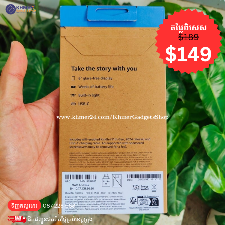 ๐ฅแแแแแแผแแทแแ Amazon Kindle Newest Model (11th Gen, Wi-Fi, 16GB) 6" โ Promotion Price $149 Only โ Free Case (Limited Stock) โ Brand New Sealed Box โ Original From Amazon USA ๐บ๐ธ โ Free Delivery โ Warranty 90 Days โ Best Price List: - Amazon Kindle Newest Model,Gen 11th,16GB, 6" ๐ท๏ธ$149 - Amazon Kindle Paperwhite Newest Model Gen 12th,16GB, 7" ๐ท๏ธ$189 - Amazon Kindle Colorsoft Newest Model, 16GB,7" ๐ท๏ธ$299 ๐ฅTelegram https://t.me/KhmerGadgetsSHOP โ๏ธ 087228xxxClick To Call Description โ The lightest and most compact Kindle-Now with a brighter front light at max setting, higher contrast ratio, and faster page turns for an enhanced reading experience. โ Effortless reading in any light - Read comfortably with a 6โ glare-free display, adjustable front lightโnow 25% brighter at max settingโand dark mode. โ Escape into your books - Tune out messages, emails, and social media with a distraction-free reading experience. โ Read for a while - Get up to 6 weeks of battery life on a single charge. Take your library with you - 16 GB storage holds thousands of books. โ Find new stories - A Kindle Unlimited subscription unlocks access to over 4 million titles, thousands of audiobooks, and more. โ Designed with sustainability in mind - This Kindle uses 75% recycled plastics and 90% recycled magnesium, and has 100% recyclable device packaging.