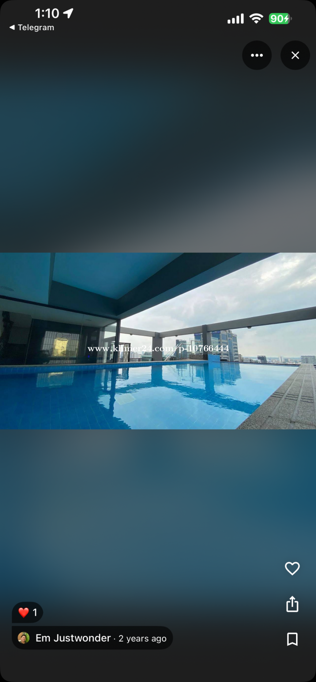 Price : $600/month (Negotiate) Unit :1bedroom Size : 50sqm Service include : Wi-Fi Parking Cleaning 3times/week Water Service charge: Electric: 0.25$ Laundry: $20/person More information: 066265xxxClick To Call Link telegram: https://t.me/KHIM_1311
