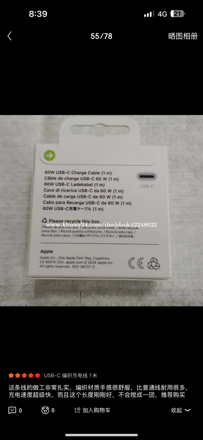 Apple 60W USB-C to USB-C Woven Charge Cable (1 m): Fast and Convenient Charging #Original product from apple factory