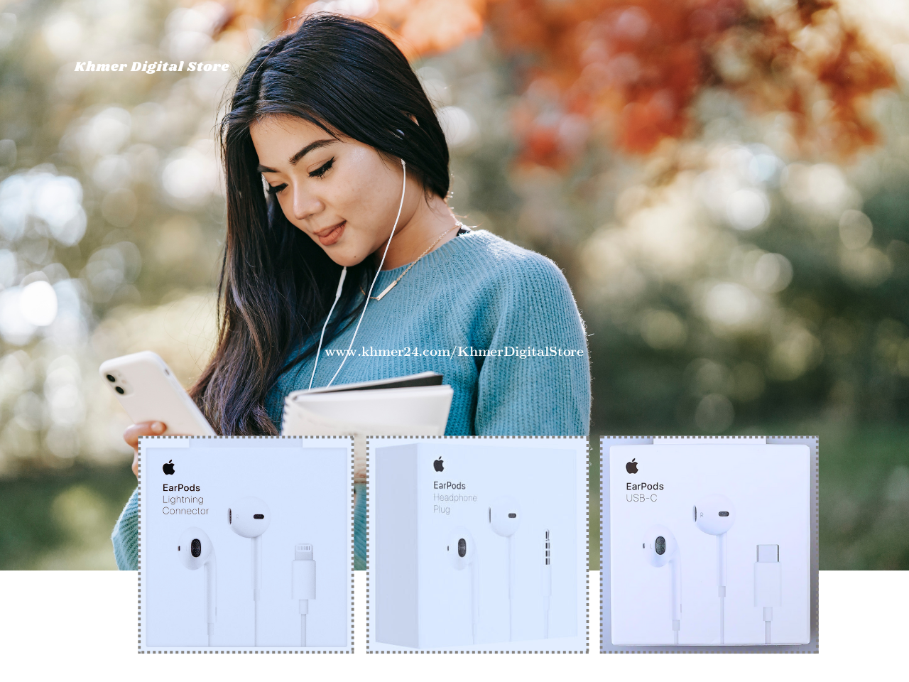 Apple EarPods Headphones with 3.5mm Plug | with USB-C Plus | with Lightning Connector _________________ โ Warranty: 3-Month โ FREE Delivery โ Price: $29 (save $6) ๐ Khmer Digital Store โ๏ธ Contact: 089845xxxClick To Call / 098855xxxClick To Call ๐จ Telegram: https://t.me/KhmerDigitalStore ๎ฅป